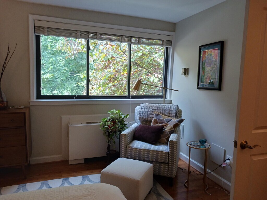 Spacious 1BR located on the top floor of a medium sized condo building just North of Georgetown. Very quiet location with tree top views, yet only steps away from Wisconsin Ave stores and restaurant. Bus is at the corner or use your bike and store it right in the building's bike-room. *** Renovated unit with gorgeous hardwood floors throughout. ** Living-room has separate dining area plus work area *** Large windows with tree views *** Kitchen has many upgrades and is fully equipped *** Renovated bathroom also has a window!!! Entry foyer has large closet and you will find additional closets in the spacious bedroom ** Washer & Dryer in hallway adds to the convenience living here *** All utilities included (except internet-cable TV-phone) *** The apartment will be professionally managed by Eva Realty, LLC and you can move in by the end of this month! Enjoy the community-room, lobby and outside seating area. SHOWN BY APPOINTMENT WITH LISTING OFFICE. 48HRS NOTICE. Medium sized condo building just North of Georgetown. Very quiet location with tree top views, yet only steps away from Wisconsin Ave stores and restaurant. Bus is at the corner or use your bike and store it right in the building's bike-room. *** Enjoy the community-room, lobby and outside seating area.