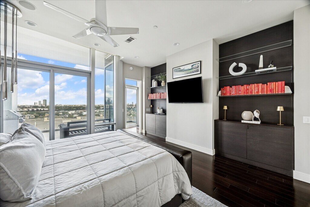 Spectacular High rise apartment with amazing views to Houston skyline. Situated in a prime location, in the heart of upper Kirby with great dinning and shopping destinations, Galleria, River Oaks district, Highland village are minutes away. Beautifully design modern living. This residence offers walls of floor to ceiling windows, 12 ft ceilings, 2 bedrooms, 3 baths, Top of the line European appliances, balcony deck with outdoor grill. Five star amenities, 24 hour concierge and valet parking, fitness center, two party rooms, catering kitchen, infinity pool Two parking spaces. Rental Terms: Annual: $6,500 Per Month