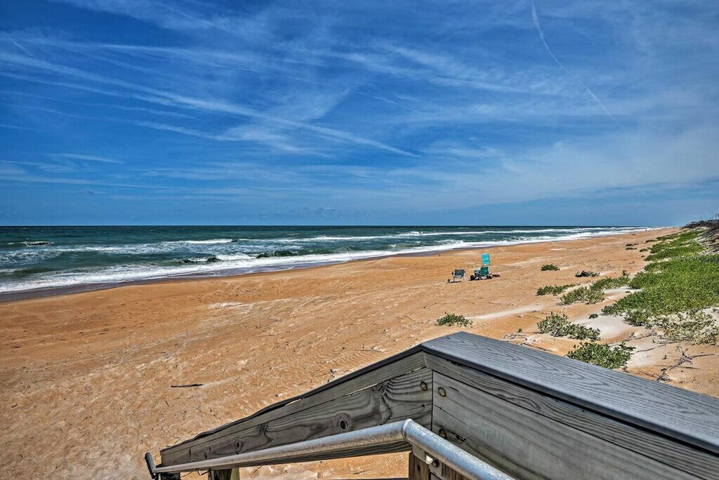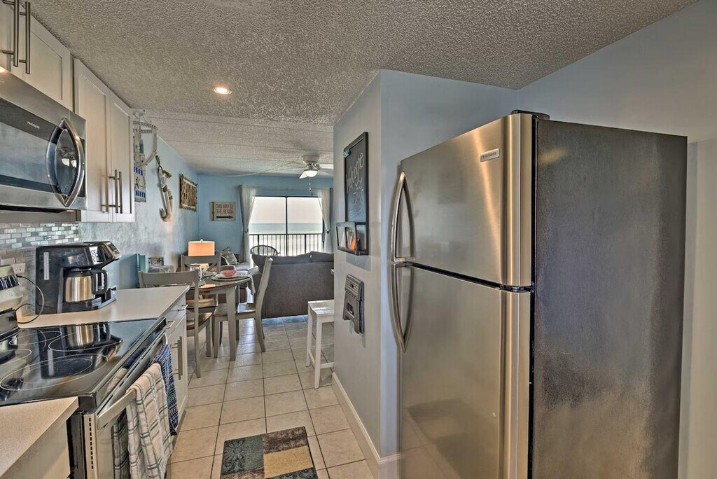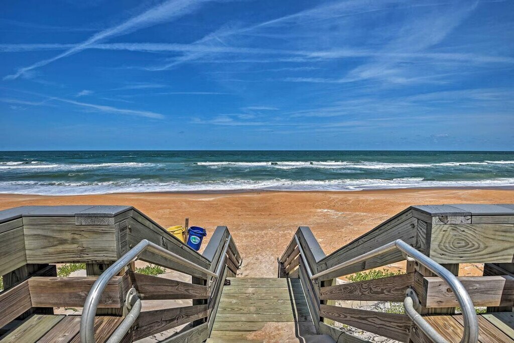 Spoil yourself with a sun-filled retreat to this 2-bedroom, 2-bath apartment in Ormond Beach! Feel at home in this beachside retreat with direct boardwalk access to the Atlantic Coast. This apartment features a fully equipped kitchen, cooking basics, dishware and flatware, blender, coffee grinder, drip coffee maker, slow cooker, and spices. Enjoy the convenience of free Wi-Fi, a washer and dryer, towels and linens, complimentary toiletries, A/C and central heat, a hair dryer, trash bags, and paper towels. Entertainment options include a Smart TV with cable, and games. Beach chairs, an umbrella, and towels are provided for your convenience. Guests have access to the beachfront outdoor pool. For travelers that love coastal views, food, and activities, this Sunny Beach Club apartment is nestled along the shore and delivers all the essentials for a breezy Ormond Beach escape. Watch the sunrise over the ocean from your private balcony, spend relaxing days lounging on the shore, take a break from the beach to tour the Ormond Memorial Art Museum & Gardens, and close the day strolling along the Daytona Boardwalk! No pets are allowed. Guests must be at least 25 years old to book. Guests will have access to the entire property via keyless entry. [SI]