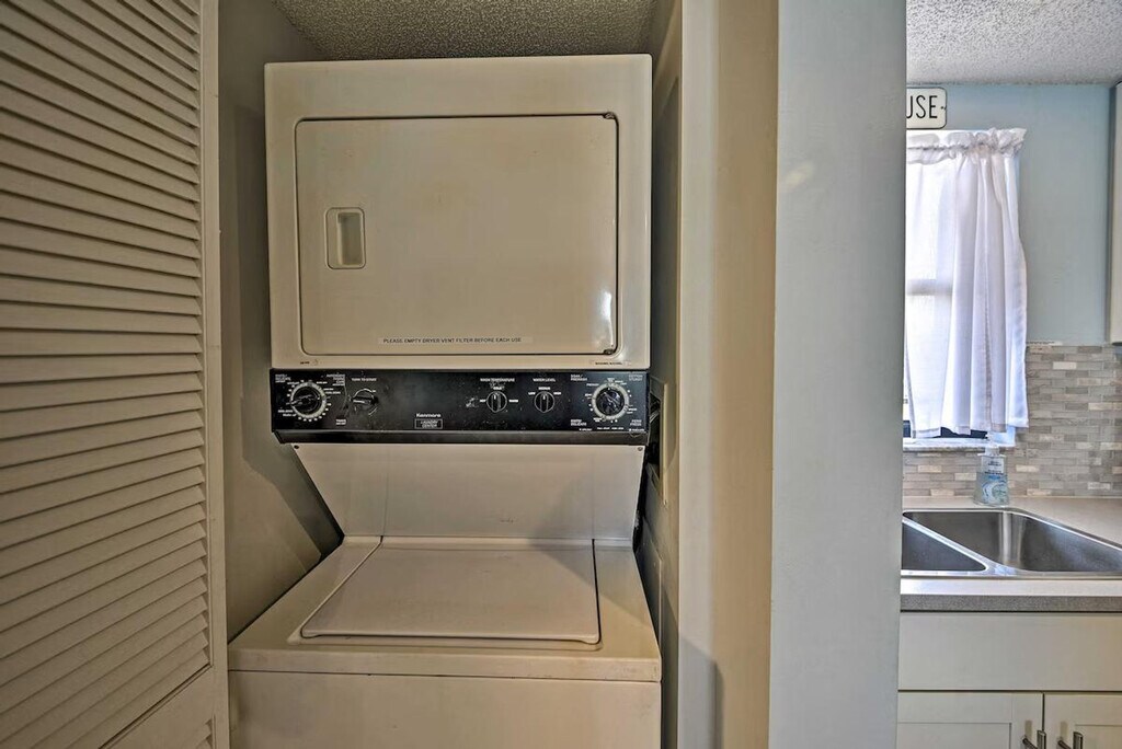 Feel at home in this beautiful 2-bedroom, 2-bathroom apartment in Ormond Beach. With step-free access via elevator, this apartment offers a private balcony with stunning ocean views. This apartment features a dining table, beach chairs, and ceiling fans. The kitchen is equipped with an electric stove, oven, dishwasher, microwave, drip coffee maker, toaster, dishes, and flatware. You'll also have access to free Wi-Fi, central heating and A/C, a washer and dryer, towels, linens, and a hair dryer. Enjoy the community outdoor pool. Assigned parking is available for one vehicle, and visitor parking is also available. Located across the street from the beach and near top attractions like Daytona International Speedway, Ponce de Leon Springs, and Rockefeller Gardens, you'll have plenty to explore during your stay. There will be crews doing repairs to the building from 8:00 AM to 5:00 PM Monday through Friday from 9/9/2024 to 3/31/ 2025. The pool and elevator will remain operational and available. [SI]