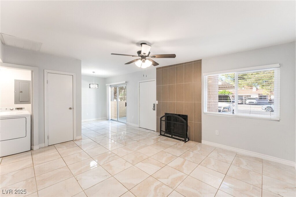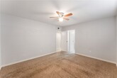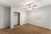 This charming and cozy home features beautiful tile flooring throughout the main living areas and soft carpeting in the bedrooms for added comfort. The open living room offers a welcoming space for relaxation or entertaining, complemented by ceiling fans and window blinds for year-round comfort and privacy. The kitchen includes all essential appliances except a dishwasher, and a small private patio area provides a perfect spot to enjoy the outdoors.
