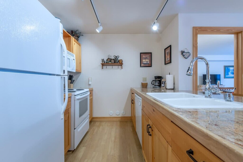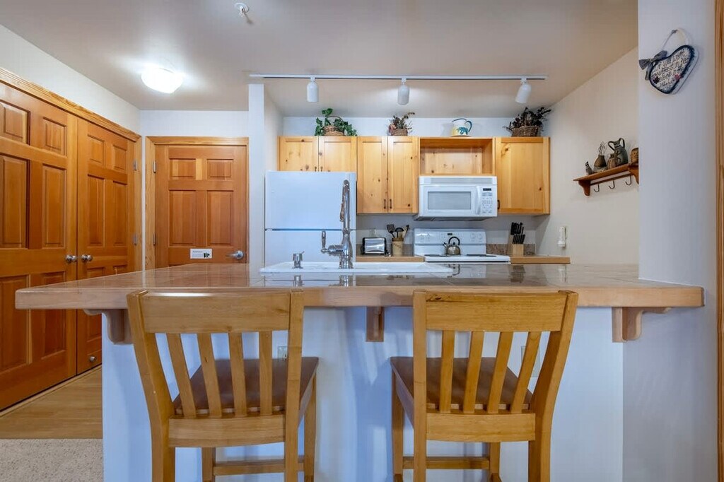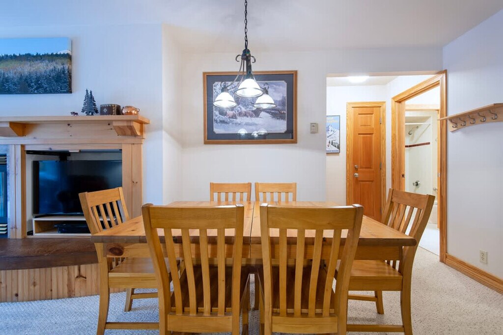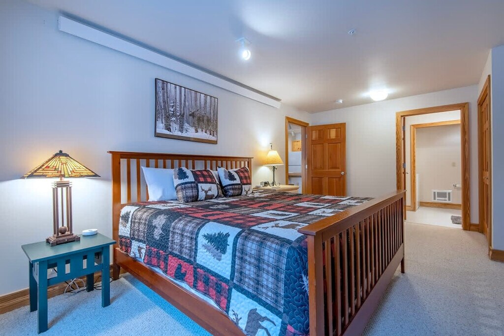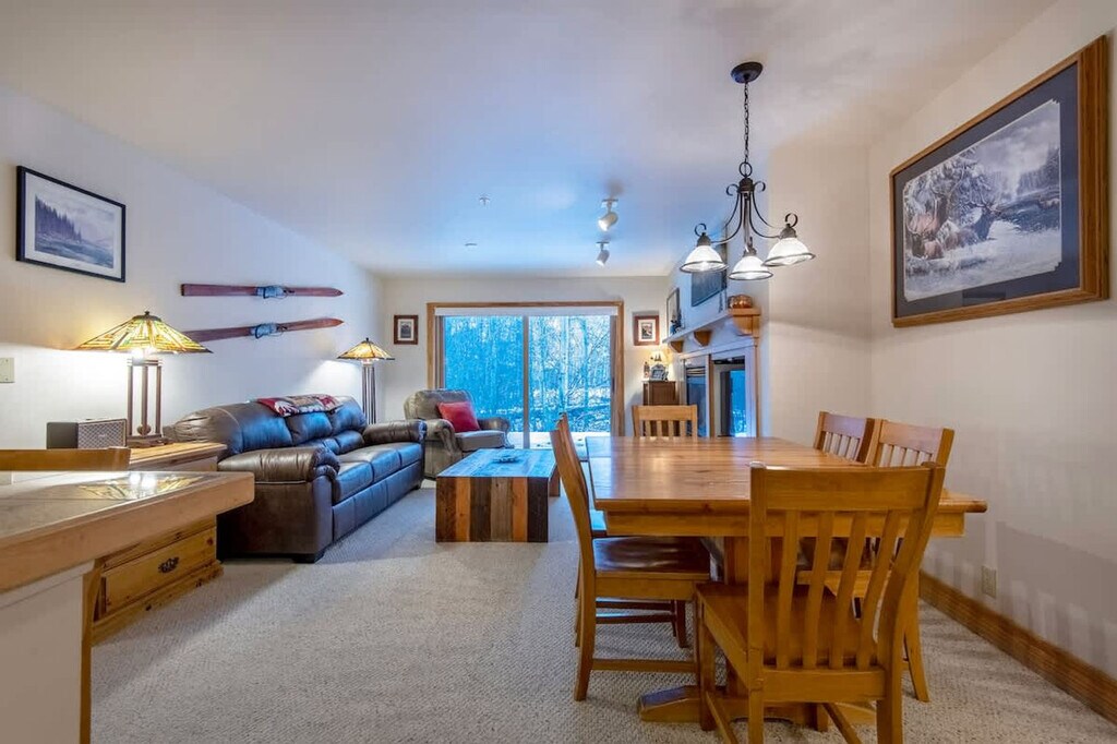 Experience the serenity of the Tetons with this delightful condo nestled at the base of the mountains in the coveted Teton Creek Resort. The resort, boasting three community hot tubs, is a mere 9 miles from the pristine slopes of Grand Targhee. Plus, with the Targhee shuttle service picking up right at the location, your ski adventures couldn't be more effortless! This ground floor condo at Teton Creek Resort features recent updates to interior furnishing and Smart TVs. The master suite offers a spacious king-size bed and a dedicated en-suite bathroom, while the guest room is furnished with two queen beds. The fully equipped kitchen includes modern appliances and a drip coffee maker, with bar seating for three, perfect for quick breakfasts or evening chats. A dedicated dining area accommodates six, inviting you to relish meals with loved ones. All grills at Teton Creek Resort, including this one, are electric, perfect for that evening cookout. Sink into the plush couch and oversized chair in the living room, adorned with tasteful western accents, and enjoy the warmth and ambiance of a gas fireplace. Proximity is key! This is the nearest condo complex to Grand Targhee Resort. A short 4-mile drive will take you to the heart of downtown Driggs, bustling with exquisite dining options and charming shops. Step out or gaze through the windows to witness an unspoiled view of lush aspens. With a westward orientation, the condo basks in the gentle glow of the afternoon sun, casting a magical, filtered light throughout. Conveniently located between two entrances to Yellowstone National Park, you can access hiking and activities in the Tetons here in Teton Valley, affectionately known as the quiet side of the Tetons. Distances to nearby ski resorts and regional airports make this location ideal for exploring the region. The minimum age of the primary renter is twenty-five years. The number of people at the property should not exceed the maximum sleeping capacity. Quiet hours are from 9 pm to 8 am, and no events, parties, or large gatherings are allowed. No smoking or vaping is permitted in the home or on the decks, and Teton Creek Resort is a no-smoking complex. Smoking is only allowed in the designated outdoor smoking area, adjacent to the Bannock Building parking area. A maximum of two licensed vehicles is allowed in the parking area. No riding snow machines, dirt bikes, or ATVs in the subdivision or at the rental property. Please do not burn candles or incense in the home. No fireworks on the premises. Keep all main entry doors locked when not occupied. Fines will apply for violations, including but not limited to: leaving garbage in the house or litter on grounds, failure to disclose or clean up after pets, smoking in the house or garage, failure to follow house rules and respect posted signs, failure to follow check-out procedure, mistreatment of hot tub, or violations of local laws. A minimum $500 fine applies for smoking or vaping in non-designated areas, violation of house rules, posted signs, laws, or failure to vacate at check-out time. [SI]