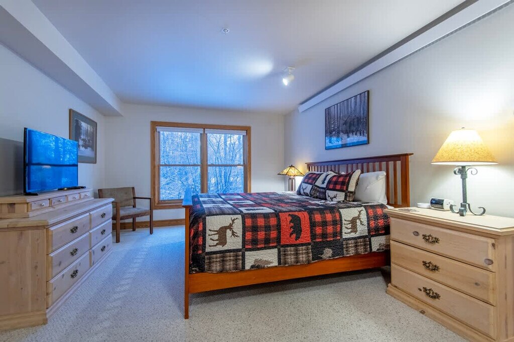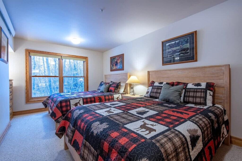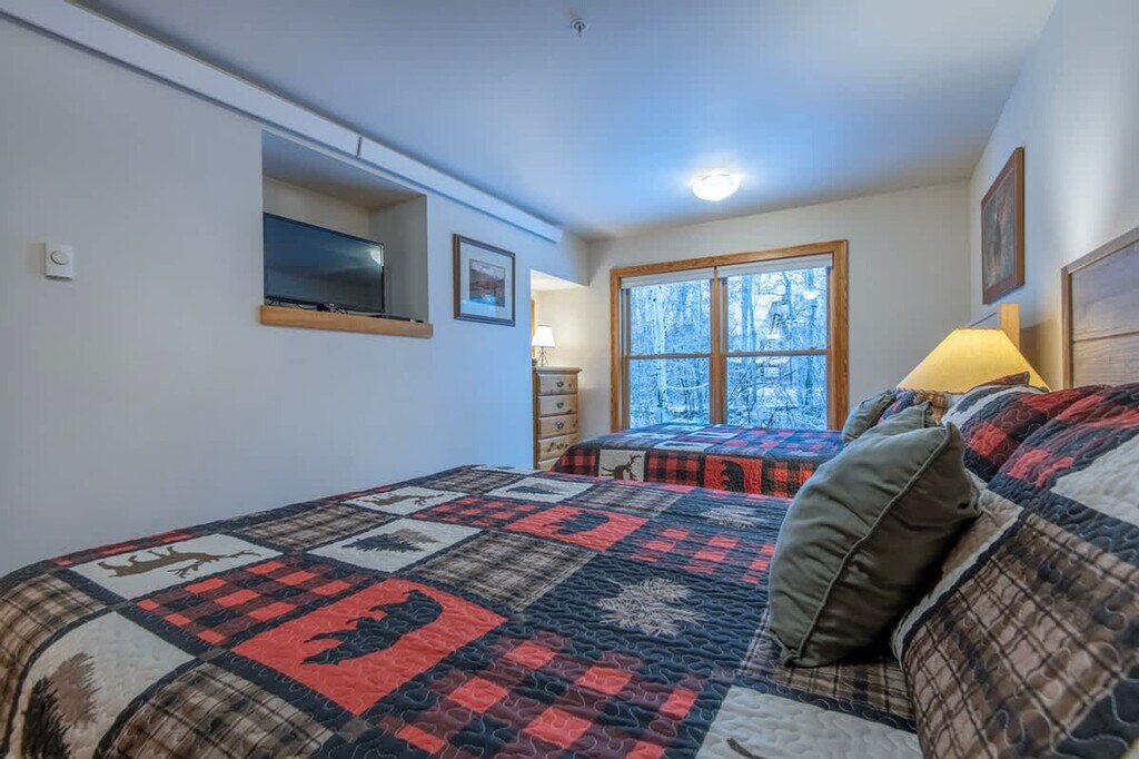 Welcome to this recently renovated vacation condo nestled at the base of the majestic Tetons and adjacent to the renowned Grand Targhee Resort. In August 2022, a complete transformation was undertaken to ensure your stay in this incredible mountainous region is as comfortable and enjoyable as possible. This modern, thoughtfully updated upstairs condo features a king-size adjustable bed in the primary suite and two window AC units in the bedrooms for those warmer summer days. Step into the stylish living area, where you’ll find plush carpeting, a large-screen TV, and plenty of space to unwind. Unlike many units in Teton Creek Resort, which offer only smaller TVs and minimal seating, this condo delivers both comfort and upgraded amenities throughout. The primary bedroom now features a luxurious king bed, with independent adjustability on each side—ideal for reading, lounging, or finding your perfect sleep position. A second large TV adds a touch of in-room entertainment. In the guest suite, you’ll find two queen beds, providing comfortable accommodations for up to four additional guests. To make summer stays even more enjoyable, the condo is now equipped with two window air conditioning units—one in each bedroom—helping keep things cool and comfortable after a day in the sun. Just outside the condo is one of the few shuttle stops servicing Grand Targhee Resort. Skip the parking hassle, grab your gear, walk out the door, and hop on the shuttle that takes you straight to the plaza. In the evenings, the shuttle even offers a short route into town, perfect for dinner or drinks without the drive. The condo is uniquely situated between two entrances to Yellowstone National Park, with Grand Teton National Park also within easy reach. Locally, Teton Valley offers miles of scenic trails and wildlife-viewing without the crowds, affectionately known as the "quiet side of the Tetons." Whether you're skiing powder at Grand Targhee, hiking wildflower-covered ridgelines, or enjoying the peaceful views from your private mountain basecamp, this condo offers the perfect blend of modern comfort and unbeatable location. There is no elevator access at Teton Creek Resort, but the condo is located as close to the parking lot as possible and is the first unit at the top of the stairs, making for easy in and out with your bags and luggage. The minimum age of the primary renter is twenty-five years. Quiet hours are from 9 pm to 8 am. No events, parties, or large gatherings are allowed. No smoking or vaping in the home or on the decks. Teton Creek Resort is a No Smoking Complex, and smoking is only allowed in the designated outdoor Smoking Area, adjacent to the Bannock Building parking area. A maximum of two licensed vehicles is allowed in the parking area. No riding snow machines, dirt bikes, or ATVs in the subdivision or at the rental property. No fireworks on the premises. Keep all main entry doors locked when not occupied. Fines will apply for violations including but not limited to: leaving garbage in house or litter on grounds, failure to disclose or clean up after pets, smoking in house or garage, failure to follow house rules and respect posted signs, failure to follow check-out procedure, mistreatment of hot tub, or violations of local laws. Minimum $500 fine for smoking/vaping/marijuana in non-designated area, violation of house rules, posted signs, laws, or failure to vacate at check-out time. [SI]