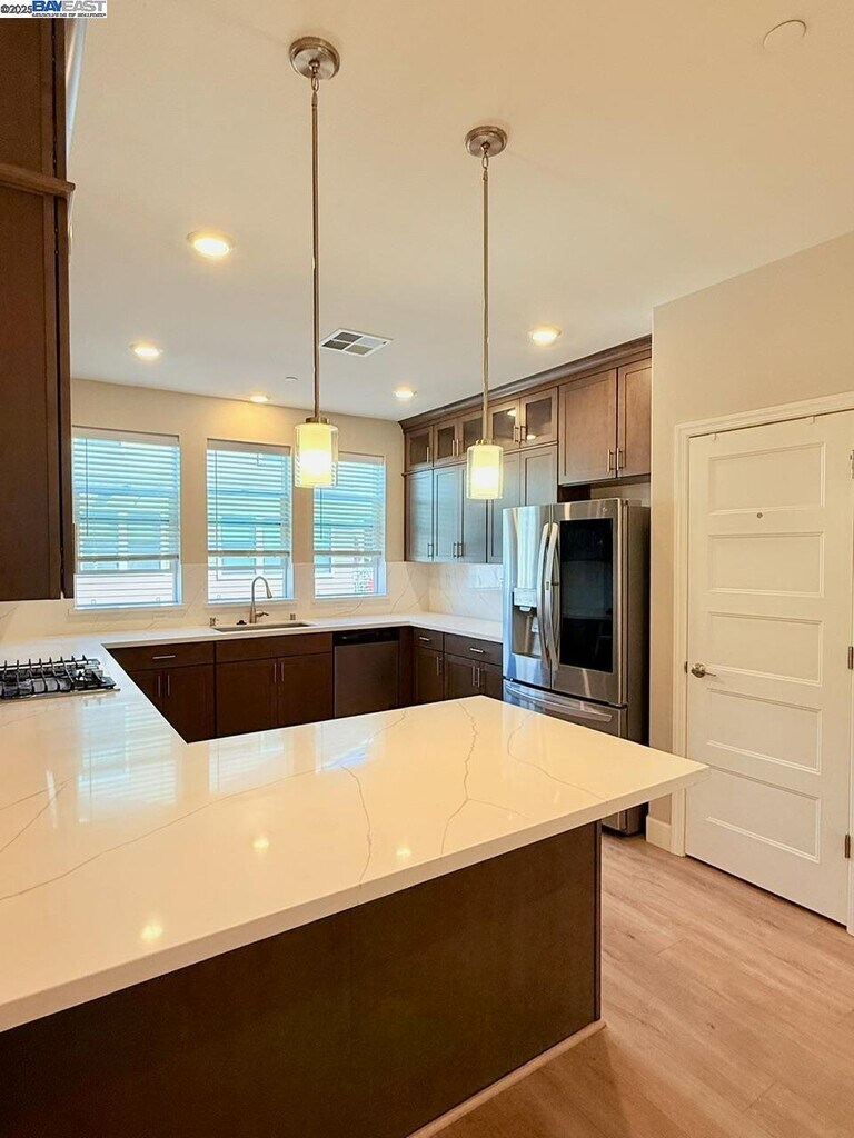 4 years new. Naya Community. Stunning Luxury townhouse style condo. Built in 2021. Tile roof. Approx. 1,209 sqft of living. offers 2- master suites,2.5 bathrooms,2-car garage. High Ceilings. The open floor plan creates a seamless flow between the Huge bright living,dining,and kitchen areas. Updated Kitchen with quartzite countertop,Stainless steel appliances. Balcony off living room. Luxury vinyl floor. Walk-in closet. Dual pane windows. Tankless water heater. 2-zone Central A/C and heating. Smart home technology. Silicon Valley Power (SVP) for electric,whose price is nearly 1/3 of PG&E. Close to tech company shuttle bus,shopping,sports club,grocery,restaurants. Easy access highway. Washer,dryer and refri. are included. Rent including water. . Apply with RentSpree