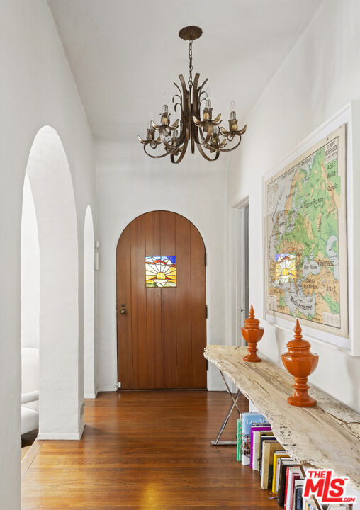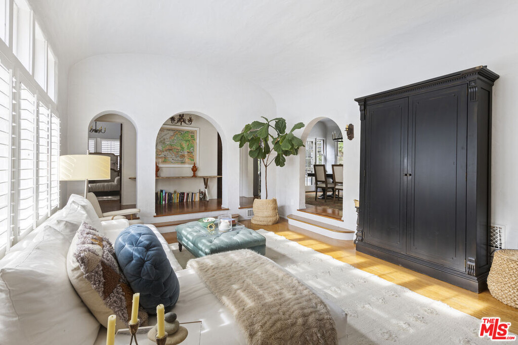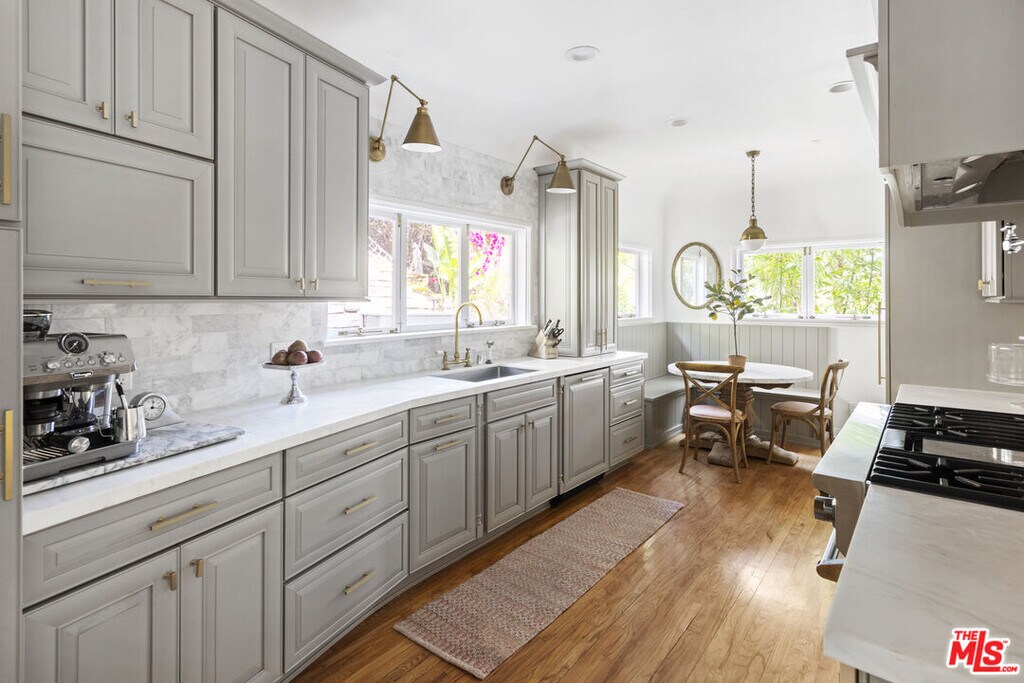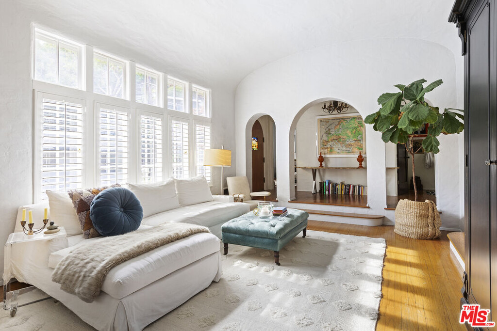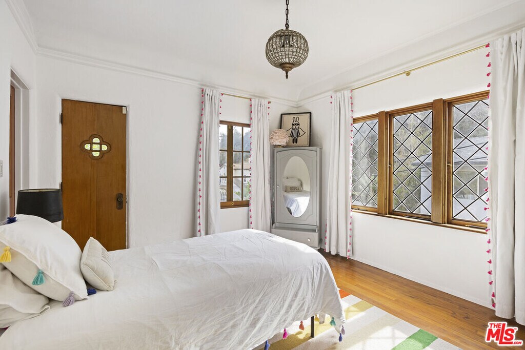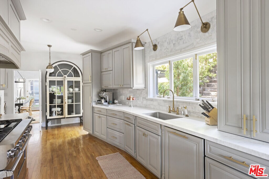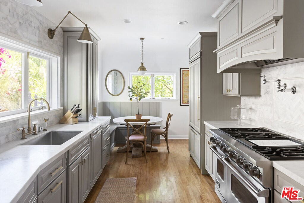 Stunning Beachwood Canyon Storybook English home. Offering 2,612 square feet of refined living space, this property includes a 3-bedroom, 2.5-bathroom main home and a thoughtfully designed newer construction ADU above the garage. Complete with a kitchenette, full bath, and custom Murphy bed, the ADU serves as an ideal space for guests, a home office, or a private getaway. Step inside the main house to discover exquisite hardwood floors, period details, and stunning stained-glass accents. The sunken living room, crowned with 11-foot ceilings, is centered around a charming fireplace, while the adjacent formal dining room opens through French doors to a spectacular outdoor space designed for entertaining. The chef's kitchen is a true entertainer's delight, featuring a Viking 6-burner range with griddle, Viking refrigerator, Calcutta marble countertops, and a lovely breakfast nookperfect for slow mornings and lively conversations. Downstairs, two flexible spaces offer endless possibilities: a gym or playroom and a separate den/office with its own custom Murphy bed. Outside, an inviting private sanctuary awaitscomplete with an outdoor fireplace, a 36" Coyote grill at the drink station, and a whimsical treehouse that adds a touch of magic to the lush backyard. Set in a prime Beachwood Canyon location, this home provides the perfect balance of tranquility and accessibility, just moments from scenic hiking trails, Beachwood Caf, and Beachwood Market. Additional conveniences include covered parking with a 220V outlet for EV charging, a second driveway space, and ample guest parking behind the home on the street-to-street lot. Available unfurnished, with the ADU included. Pet-friendlybecause every home should welcome a woof and a meow! MLS# 25601971