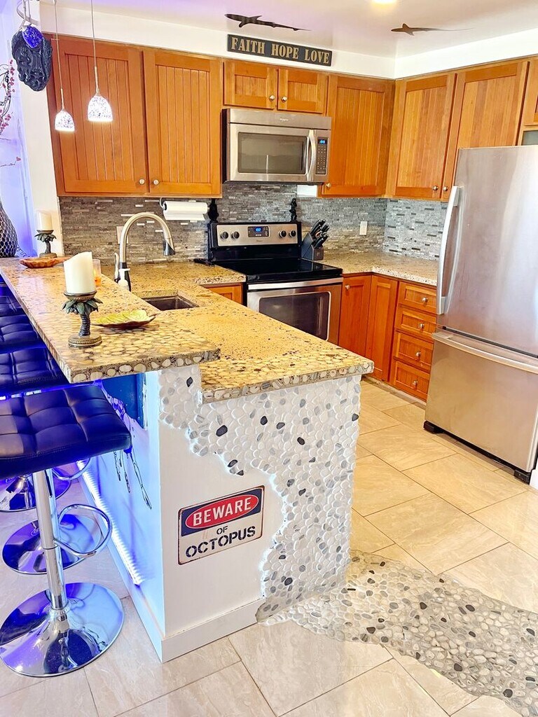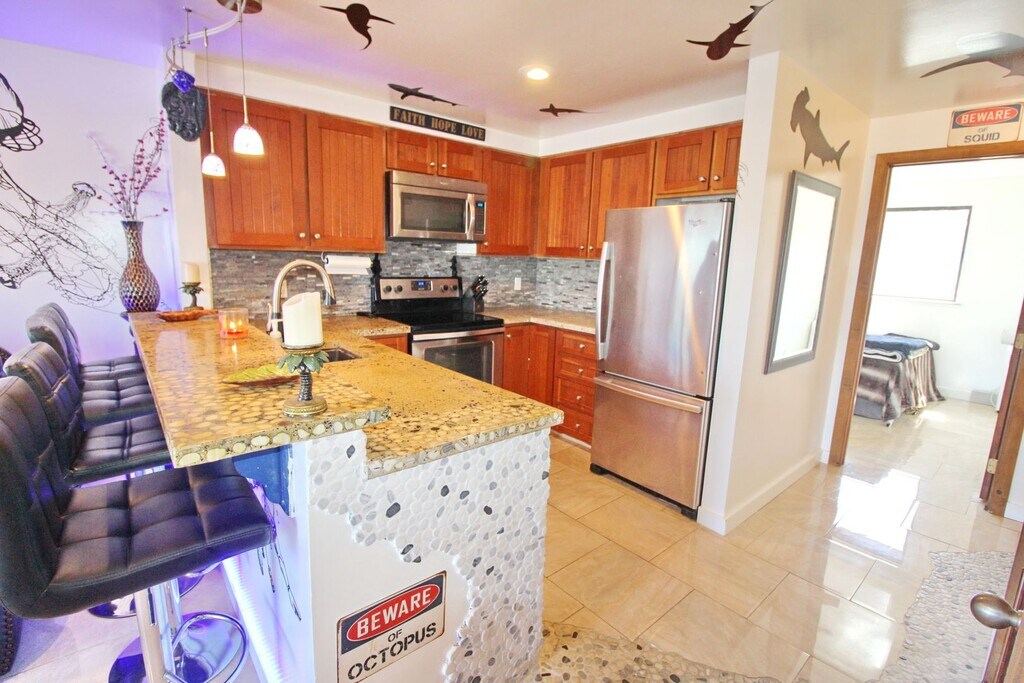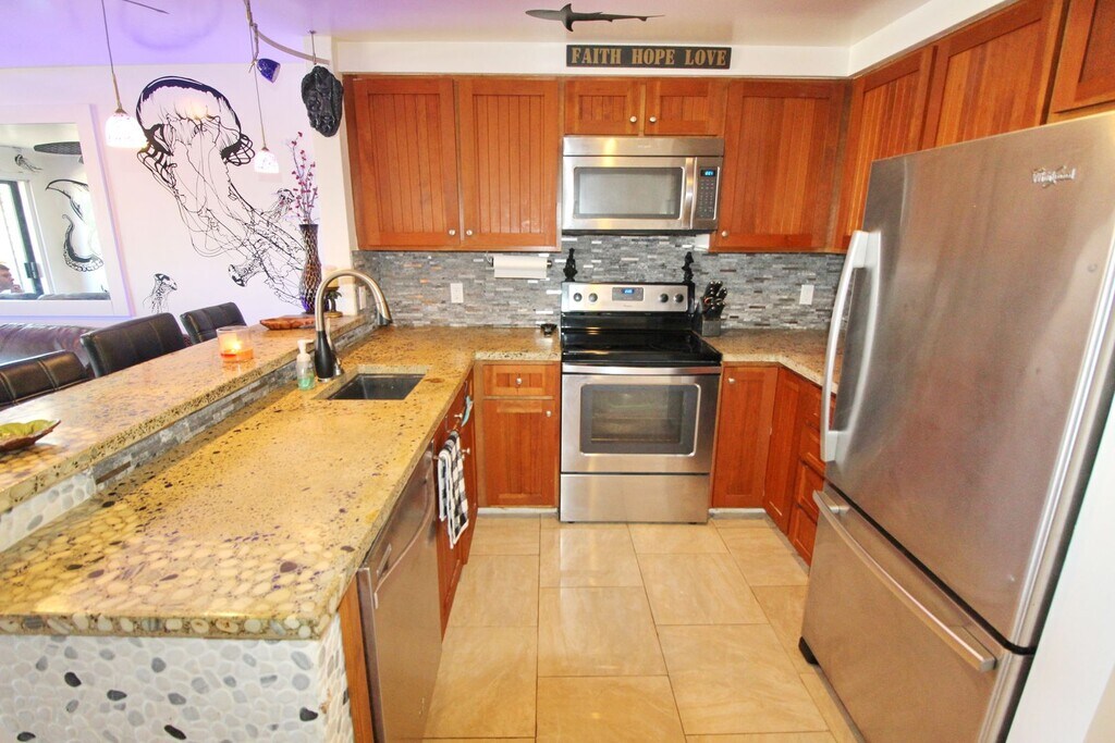 - Additional Property Details- Introducing a newly remodeled and spacious furnished 2-bedroom, 2-bathroom condo located in desirable sunny South Kihei. This stunning and well-designed unit offers a unique, comfortable and modern living space. If you love the ocean then this condo will make you feel right at home as it is like living in an aquarium. Tile flooring, decorative stone work, underwater artistry, extra large new A/C unit in the living room, stainless steel appliances including a dishwasher, washer/dryer in the unit, king size bed in master with large dresser, shoji closet doors and mounted flat screen TV, premium queen size blow up bed in guest bedroom with portable A/C unit, premium leather electronic movie theater seating for 4 in front of a large mounted flat screen TV in living room, Energy efficient and modern lighting for different moods, electronic blinds in living room in master bedroom compatible with Alexa voice command. Ample closet and storage spaces. This unit is on the highest level which offers ocean and mountain views from the lanai. With its prime location, residents can enjoy the Maui lifestyle and the convenience of nearby amenities. Kihei Shores has community storage areas for your surf boards, bike racks, lending library, and is close to Kamaole Beach III (one of Kihei's best places to view the sunset and picnic) with excellent snorkeling. Restaurants, shops, and just about every convenience are just minutes away. Residents can take advantage of the community pool, jacuzzi and BBQ area with tables. Complex supplies mandatory eco friendly pest control spraying quarterly both inside/out and WiFI internet as the HOA provides. One designated parking space right in front of the unit and one other unassigned. Complex car wash for occupants' use. Water, sewer, Internet, pest control and standard trash removal are all included in the rent as the HOA provides. The tenant is responsible for electric and any other utilities tenant(s) may want. Rental insurance is required to be obtained and maintained by the tenant. Available for a one year minimum term. $4000 a month plus utilities. No pets allowed in complex please. This unit is currently listed For Sale with our office Pali Kai Rentals & PKR Realty for $590k. If we secure a tenant then we will remove it from the sales market. - F102 - 2747 S Kihei Rd- $2,8002 Beds, 2 Baths, 719 sq ftAvailable Nov 17- Availability Details- Price - Availability Date - Unit - Sq Ft - Deposit - $2,800 - November 17, 2025 - F102 - 2747 S Kihei Rd - 719 sq ft - $2,800 - Model Amenities and Features- Kitchen- Dishwasher