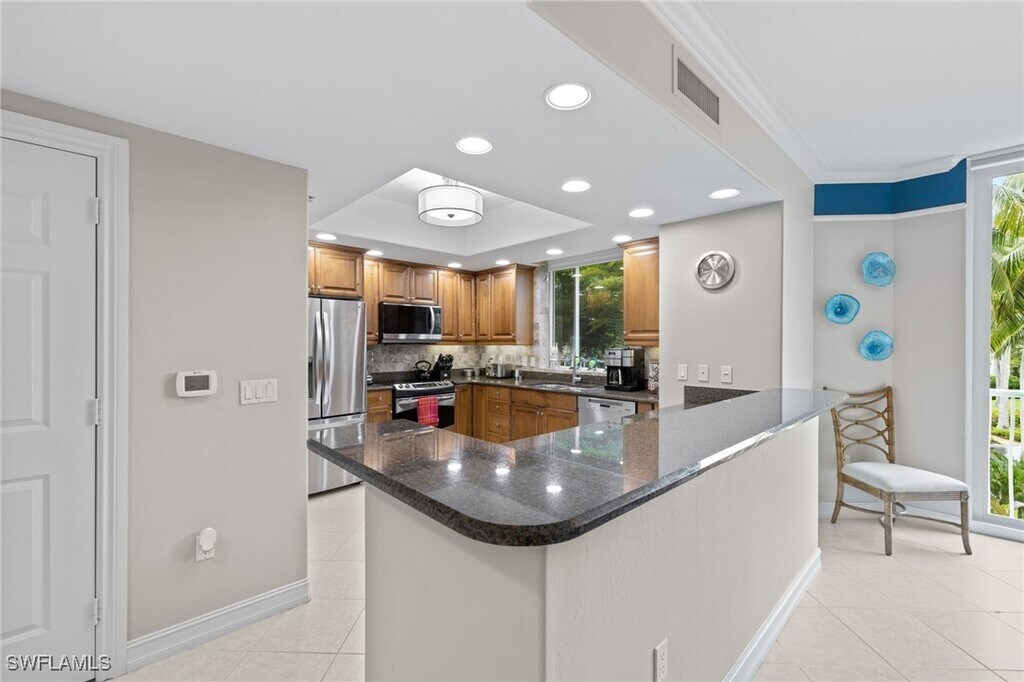 **AVAILABLE May - November 2025** Beautiful end unit 2 bedroom 3 bath residence with plenty of windows and an expansive outdoor living area with a wrap around balcony overlooking the pools,golf course,and lake! As you step inside you'll immediately be captivated by the abundant natural light and elegant interior. The gourmet kitchen features granite countertops,stainless appliances and breakfast bar seating. The large master bedroom has an attached spa-like en-suite bathroom with dual vanities,a deep soaking tub,and a separate shower. Included with this residence is a transferable SIGNATURE MEMBERSHIP to the Tiburon Golf Club with Ritz Carlton privileges. Resort Amenities include: 36 Holes of Championship Golf,Tennis,Spa Services,Fitness Center,Beach Access with Private Shuttle Transportation,Tiburon Concierge Services,the RITZ-CARLTON Resort Pool,Dining and Lounge! Ventanas offers the largest pool in Tiburon with two lap lanes,a deep diving section & plenty of in water pool seating. The pool deck offers gas grills,undercover dining areas,a pool side spa & wonderful views of the first golf fairway! The Tiburon community has 24 hour security and gated entry.