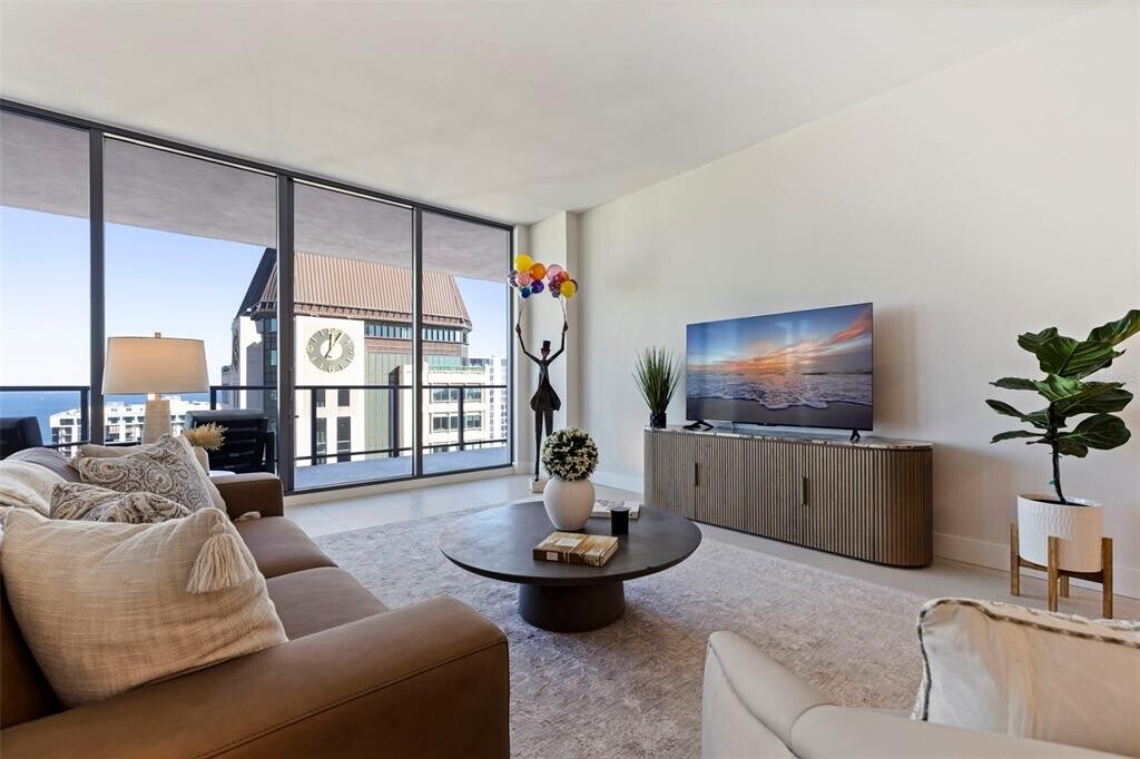 The Curator – A Masterpiece in the Sky Perched on the 30th floor of Art House,The Curator offers an extraordinary 2-bedroom,3-bath residence with a private den,designed for those who appreciate refined living,thoughtful design,and quiet luxury. With one of the most coveted northeast views in the building,this fully furnished home captures panoramic cityscapes,the marina,and breathtaking sunrises,all while offering a desirable split-bedroom floor plan that ensures both privacy and functionality. Ready for immediate occupancy with a quick and easy process,this residence is truly turnkey. Inside,the home is curated with exceptional attention to detail,featuring rare Michelangelo stone countertops with a leathered finish,creating a cohesive and sculptural design. Fully furnished by Restoration Hardware,the residence is equipped with major furniture pieces,curated décor,designer silverware,and plush towels. A stunning 54-inch solid brass chandelier by Jonathan Browning Studios serves as a striking architectural accent above the kitchen island. Spacious bedrooms each include en-suite baths and custom closets,while the private den offers an ideal space for a home office or creative studio. A guest suite provides a separate en-suite bath,custom closet,and access to the balcony. Floor-to-ceiling windows flood the home with natural light,enhancing the energizing ambiance,and a private laundry room adds extra storage and utility convenience. Art House residents enjoy a range of world-class amenities,including a resort-style pool with cabanas and sundeck,a state-of-the-art fitness center with cardio equipment,weights,and yoga studio,as well as luxurious sauna and steam rooms. Additional building features include a private resident lounge,entertainment spaces,business center,valet parking,secured garage access,and 24-hour concierge and security services. Two private guest suites and high-speed internet with designated work-friendly areas provide added comfort and convenience. Ideally situated with exceptional walkability to downtown St. Petersburg’s dining,shopping,waterfront parks,museums,and the Pier,this residence offers a curated experience of modern sophistication and comfort. Perfect for those who seek to live,work,and thrive in style. MLS# TB8471737