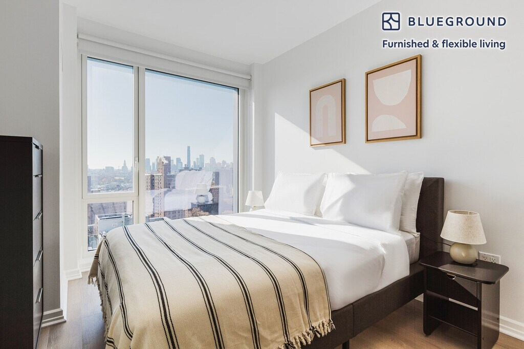 Show up and start living from day one in New York with this spacious one bedroom Blueground apartment. You’ll love coming home to this thoughtfully furnished, beautifully designed, and fully equipped Southside home with stunning high floor views over the city. (ID #NYC1696) The advertised rate of $4,200/month is the lowest available price, based on a 1 month(s) and 27 day(s) stay with a move-in date of January 20, 2026. If you’re looking for a 1-year stay, the rate is $4,660/month. Rates vary depending on the duration of stay, season, and other parameters. For exact pricing and additional pricing components, please visit our website and enter your desired move-in and move-out dates. The rate is applicable when billed upfront; it can be higher if billed in multiple payments. Brokers are welcome to reach out. Were you looking for an unfurnished lease? Try Blueground instead and upgrade from unfurnished to furnished living: - Furnished at rates comparable to unfurnished - No setup or furniture costs - save thousands - Move-in ready - save time, just bring your suitcase Designed with you in mind Thoughtfully designed with bespoke finishes, modern furnishings, and a fully equipped kitchen, you’ll enjoy that “I’m home” feeling with this Blueground apartment. Whether you’re lounging in your spacious living room streaming the latest and greatest entertainment on the smart TV or premium wireless speaker, or getting some well-earned rest on the superior quality mattress with luxury linens, you’ll fall in love with everything this Southside apartment has to offer. This apartment also offers in-apartment laundry. Sleeping arrangements Queen Bed, 63in/160cm Amenities Building amenities unique to this one bedroom apartment include an on-site: - Basketball Court - Doorman - Dryer - Elevator - Washing machine - Lounge Arrival and ongoing support The entire apartment is yours to enjoy! Throughout your stay, you’ll have access to our Client Experience team through the Blueground App. You can schedule additional cleanings, submit maintenance requests, and view our neighborhood recommendations with just a few taps. We’ll share all details upon confirmation of your stay. Other things to note Building amenities may have an extra cost. This Blueground apartment has flexible lease options, allowing you to book it for one month, a year, or more. Brokes CYOF. We take great pride in ensuring every photo displayed is shot in our own units with our actual furnishings. That said, we regularly refresh our decor and furniture arrangement, which may differ from what’s pictured. [SI]