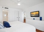 Down By The Bay! Miramar at the Moorings! This renovated fourth floor 2 Bedroom/2 Bath condo presents wide views of the bay via floor to ceiling windows and offers beach access directly across the street. Gorgeous porcelain tile floors and lots of natural light give this home the perfect Florida feel. The amazing nearly 50 ft lanai provides plenty of views and versatility. The second bedroom features a Murphy bed and can also be used as an office. Miramar has its own clubhouse room as well as an inviting community pool and is ideally located close to shopping,numerous restaurants,and Naples white sandy beaches.