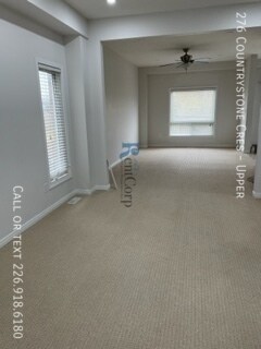 4 Bedroom house (Only upper level) | 276 Country Stone Cr. Waterloo, ON. Available: January 2026 This Unit Features: A Beautiful and spacious detached 4-bedroom house is available for rent in Kitchener. The unit is 2 stories with 2 full washrooms and 1 powder room. The unit comes with a fridge, stove, Microwave, washer & dryer. The main level of the home has a spacious front foyer, a powder room located off the front entrance, and access to the 1-car garage. The kitchen overlooks the dining room and living room with an open concept. Walk out to the patio from the dining area and enjoy the beautiful green space (Backyard not fenced in). The Master bedroom is very spacious, with lots of natural lighting and large double closets and a spacious walk-in closet. The three other bedrooms are also included with large closets and face the back of the home that overlooks the beautiful green space. It is in an excellent location, close to all amenities such as Boardwalk Shopping Complex, Public transportation, school, park, theatres, etc. Rent :2700 + 70%utilities extra Lawful rent: $2800month, and received $100 monthly discount for exterior maintenance Must have good credit and proof of employment.