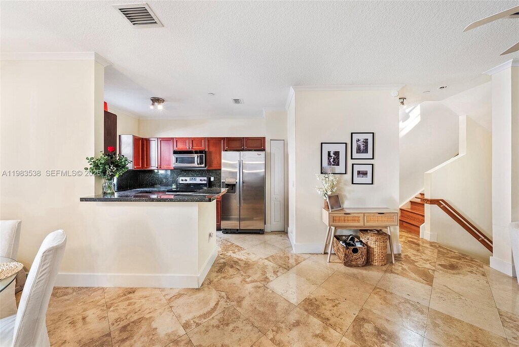 Rarely available Mediterranean style 2 bed / 2.5 bath townhouse for lease in Villaggio in the Grove. This tri-level residence features a 2-car garage on the first level along with additional storage and a climate-controlled flex space ideal for a home office or gym. The main living level includes an updated kitchen with granite countertops and stainless steel appliances, a half bath, and marble flooring. Upstairs provides two spacious bedrooms with en-suite baths and walk in closets. The property has impact windows and doors throughout. Enjoy the ideal Grove lifestyle with the ability to walk to nearby parks, restaurants, marinas, and the village center. MLS # A11983538