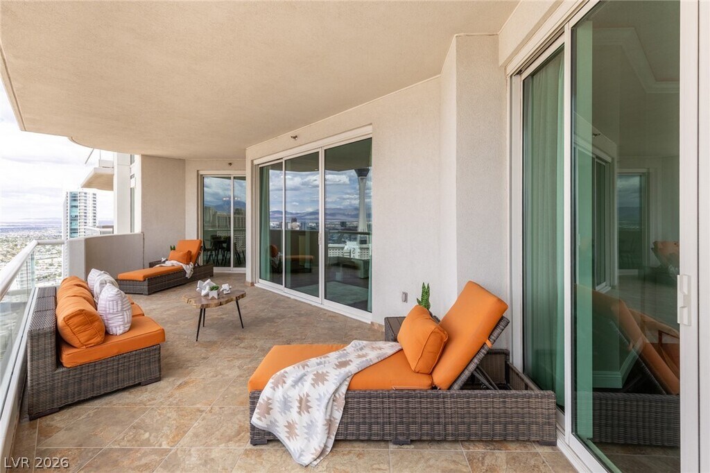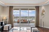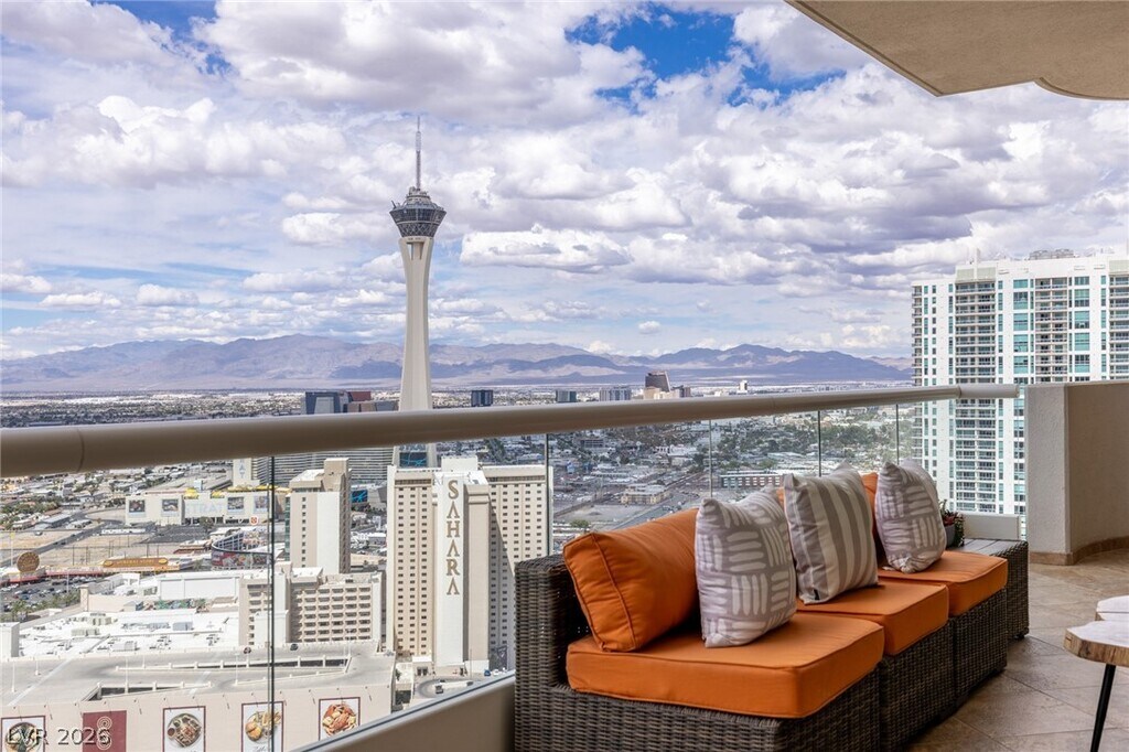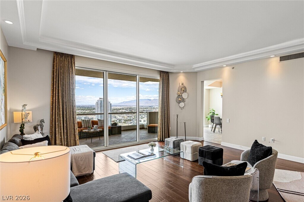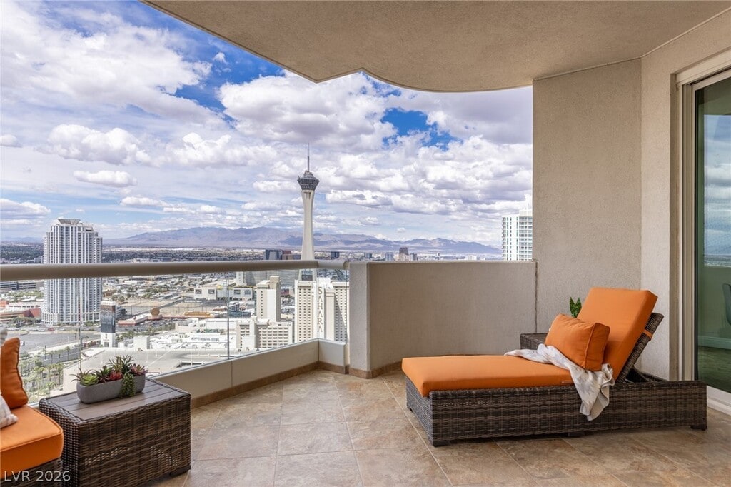 ELEGANT LIVING at TURNBERRY PLACE just off THE Strip and only a 5 minute walk to the new FOUNTAINBLEAU HOTEL. Enjoy the MGM SPHERE'S nightly show with unobstructed views from your private balcony! Enter from the private elevator entrance into the 2805 Sq Ft 3 Br/ 3 Bath condo. Featuring an oversized great room w/fireplace, separate family room, gourmet kitchen with Gaggenau appliances and Sub-zero fridge. 2 large terraces (388 sq ft) with views in every room including downtown LV, Las Vegas Strip, LV Country Club, golf course and mountains. New luxury carpet in all bedrooms! The primary bath has a marble-clad Jacuzzi bathtub and separate shower. The primary bedroom has 2 walk-in closets. Electric blinds on every window! Included: water, gas, cable and internet. Amenities include pool, cabanas, barbecues and gym. Free no-tipping valet and concierge. Free limo service to/from airport and The Strip. The amazing STIRLING CLUB (optional) located on the property is available for membership. MLS ID 2737088