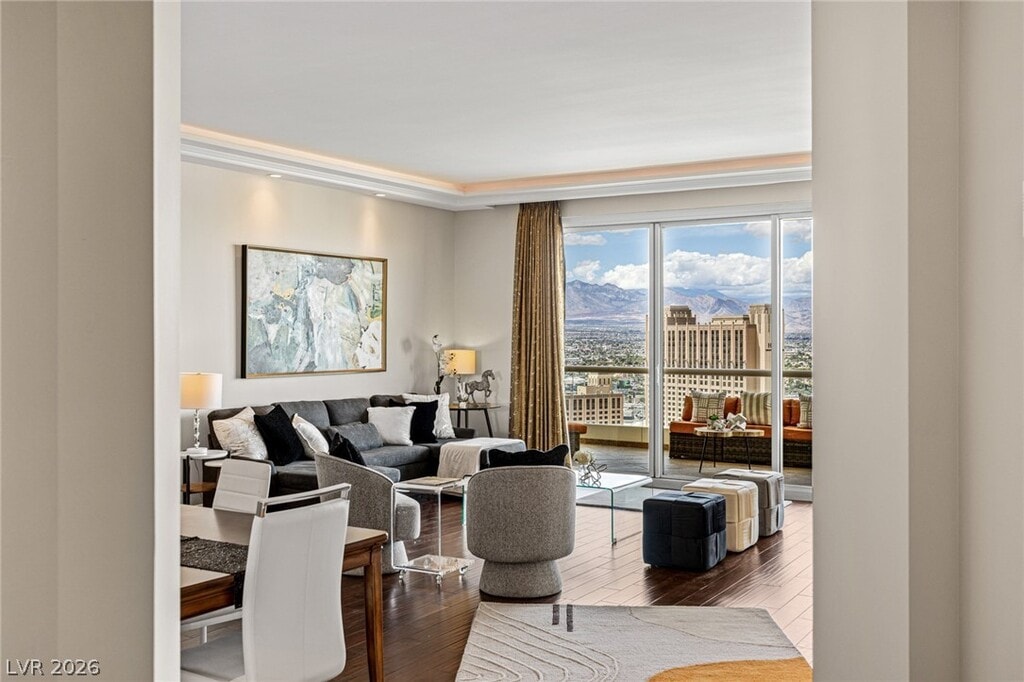 Stunning condo on the 35th floor w Unrivaled Day & Night views for Rent. FURNISHED, Large floor-plan & 2 spacious Primary suites. Panoramic views of the Strip, Downtown Las Vegas, Mountains & The lush Golf course. Dramatic 11' ceilings. A one of a kind high-rise w impeccable wood floors. Large rooms, 1 level throughout. 2,195 ft.² Interiors +479 ft.² of balconies, in addition, a powder room, laundry room w cabinets & sink. Two Enormous terraces. 1 storage unit, 1 car space +you may valet a 2nd car. The HOA fee covers;water, gas, cable, internet, valet, concierge, limo services, security, management on site & +. The Stirling club is located on the property grounds offering full spa services, salon, barber shop, massage, facials, nails. The club features a large & well equipped gym, pilates/yoga classes, tennis/pickle-ball courts, sauna, indoor/outdoor pools, gourmet restaurants, bar, cigar lounge, Starbucks, wine cellar & tasting room, space avail. for private functions. Welcome home! MLS ID 2762492
