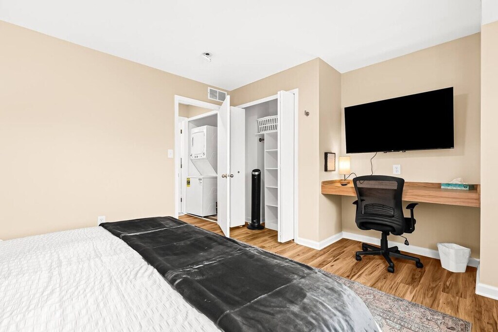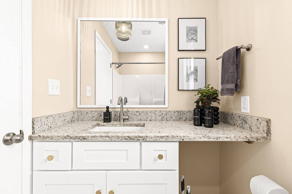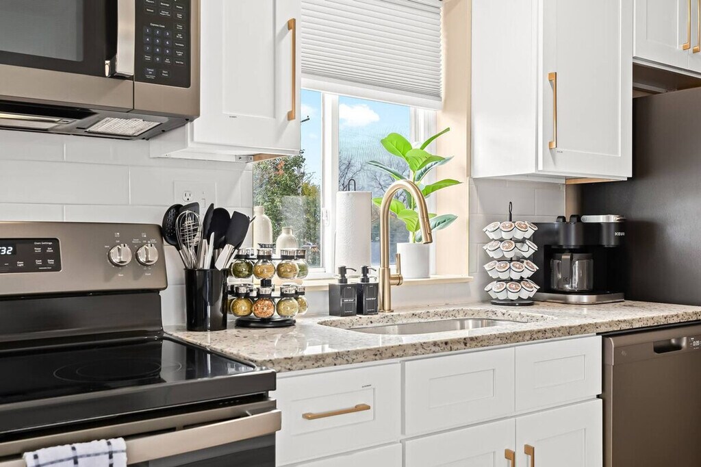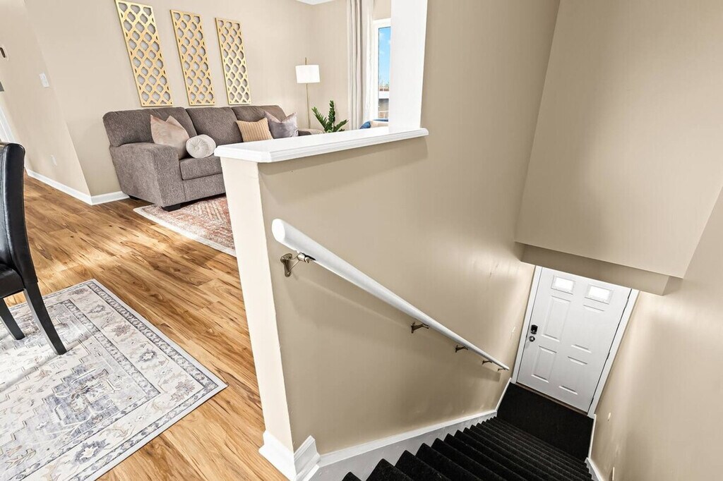 Relax and enjoy your stay in this spacious, cozy, and newly renovated 1-bedroom apartment located on the 2nd floor in Roseville, a safe and quiet community. Feel at home in this convenient location, perfect for those traveling to the Detroit area, with easy access to the 696 and i94 expressways, and a variety of restaurants, bars, shopping, and grocery stores within 1 mile. Welcome to the newly renovated, spacious apartment, where you can experience the peaceful ambiance of an inviting Roseville retreat, surrounded by mature trees and privacy. The open-concept living area allows you to relax, watch a movie, prepare your favorite meals, and enjoy memorable evenings. The kitchen is fully equipped with modern appliances, granite countertops, and a dining table for three, making meal preparation effortless and enjoyable. The living room features a comfortable sofa, smart TV, and cozy accent chairs, perfect for unwinding after a long day. The apartment offers free parking in the parking area behind the house and an EV charger for your convenience. While the unit is not pet-friendly, there is a fully fenced dog area towards the back of the property for those traveling with pets. Non-approved pets will incur a $1000 fine. Roseville, MI is centrally located within Macomb County, providing convenient access to Metro Detroit. The location is minutes away from Macomb Mall and Macomb Community College, and only half a mile from the 696 and i94 expressways, offering quick routes North, South, and West. Situated off Gratiot Ave, it provides quick access to shopping, restaurants, and entertainment, and is a short drive to Lake St. Clair and Metro Parkway Beach. The property is tucked away off the main road, surrounded by mature trees and greenery, offering a serene environment. The apartment is not pet-friendly, and non-approved pets will incur a $1000 fine. Smoking is only allowed outside, with a $1000 fee for smoking inside. Quiet hours are from 9 PM to 8 AM daily, and noise complaints will result in a $250 fine. A $250 fee will be charged for late check-out after 11:15 AM, and for moving furniture or excessive cleaning required after your stay. Security cameras are installed around the exterior of the property and in the common area laundry room, but not inside the apartment, ensuring your privacy. The apartment is equipped with fast Wi-Fi, making it remote work-friendly. A smart lock allows for self check-in, and the unit includes a washer and dryer for your convenience. The health, safety, and well-being of guests are of utmost importance, with a thorough cleaning process in place after each check-out. The apartment is not kid-friendly, and there are security cameras surrounding the exterior of the property and inside the common area laundry room. [SI]