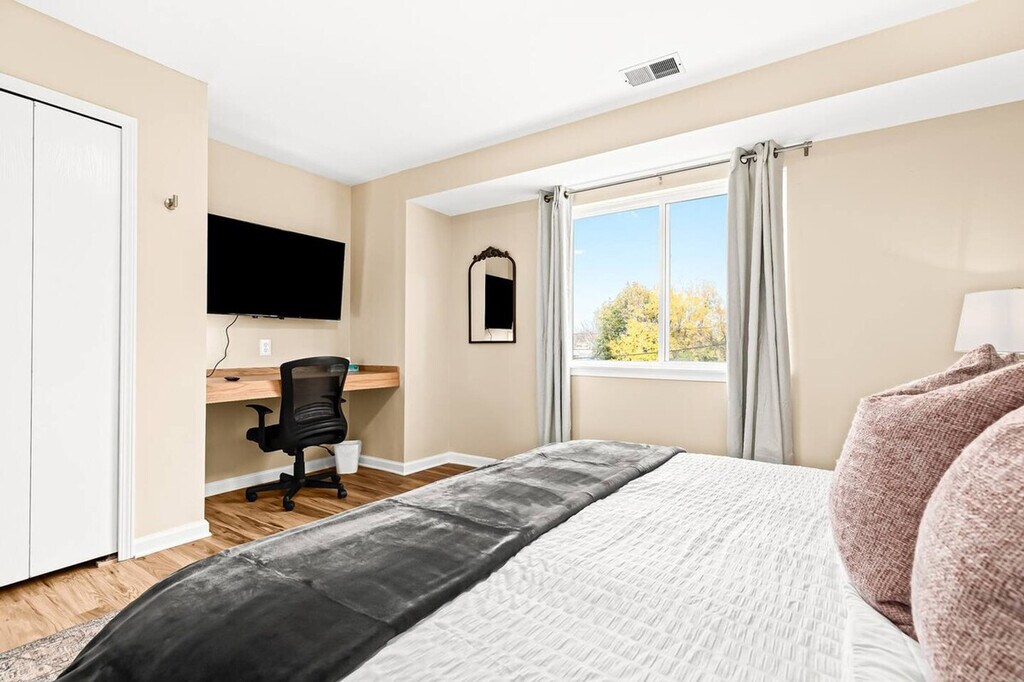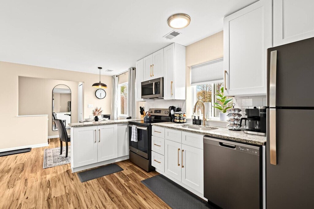 Relax and enjoy your stay in this spacious, comfortable, and newly renovated 1-bedroom apartment located in the safe and quiet community of Roseville. This apartment is perfect for those traveling to the Detroit area, with convenient access to the 696 and i94 expressways, and a variety of restaurants, bars, and shopping options within a mile. Welcome to this newly renovated, spacious apartment where you can experience the peaceful ambiance of an inviting Roseville retreat. The open-concept living area allows you to relax, watch a movie, prepare your favorite meals, and enjoy memorable evenings. Step out to the shared backyard to catch a breath of fresh air and enjoy the lush grass. The king bedroom offers a fantastic oasis of relaxation, ensuring a restful sleep. This pet-friendly unit charges a $150 fee per pet. Non-approved pets will incur a $1000 fine, and failure to disclose pets may result in booking cancellation without a refund. An EV charger is available for your convenience. Roseville, MI is centrally located within Macomb County, providing convenient access to Metro Detroit. Minutes away from Macomb Mall and Macomb Community College, and just a half-mile from the 696 and i94 expressways, this location offers quick access to shopping, restaurants, and entertainment. It's also a short drive to Lake St. Clair and Metro Parkway Beach, surrounded by mature trees and greenery. Security cameras are installed around the exterior of the property, including a Ring doorbell at the front door for safety. Quiet hours are from 9 PM to 8 AM, and any noise complaints will incur a $250 fine. Smoking is only allowed outside, with a $1000 fine for indoor smoking. A $250 fee applies for late check-out after 11:15 AM, and excessive cleaning fees may apply for dirt or stains. Please do not move furniture, as a $250 fine will be charged if furniture is moved from its original position. The apartment features fast Wi-Fi, making it ideal for remote work. A smart TV with Roku is also available for entertainment. [SI]