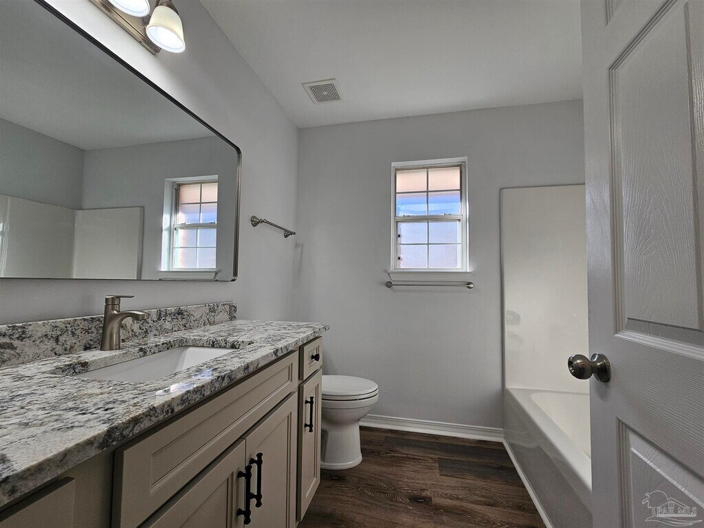 28 Easton St is a fantastic 3 bedroom, 2 bath patio home with large 2-car garage located in the popular Milestone subdivision. Minutes from I-10 and the Navy Federal campus you're close to tons of restaurants and easy access to Pensacola. This brick home offers 1,695 square feet of comfortable living space on a .17-acre fenced lot. Inside you'll find a split floor plan with new flooring LVP and paint throughout for a low-maintenance rental. The kitchen has been renovated with new cabinets, counters and appliances and opens right into the dining and living rooms. Both bathrooms have been updated with new vanities and cabinets as well. Out back you'll find a small patio and fenced yard. This property requires participation in the MSPM Resident Benefit Package for an additional monthly fee. Additional information on this program can be found upon submission of application.