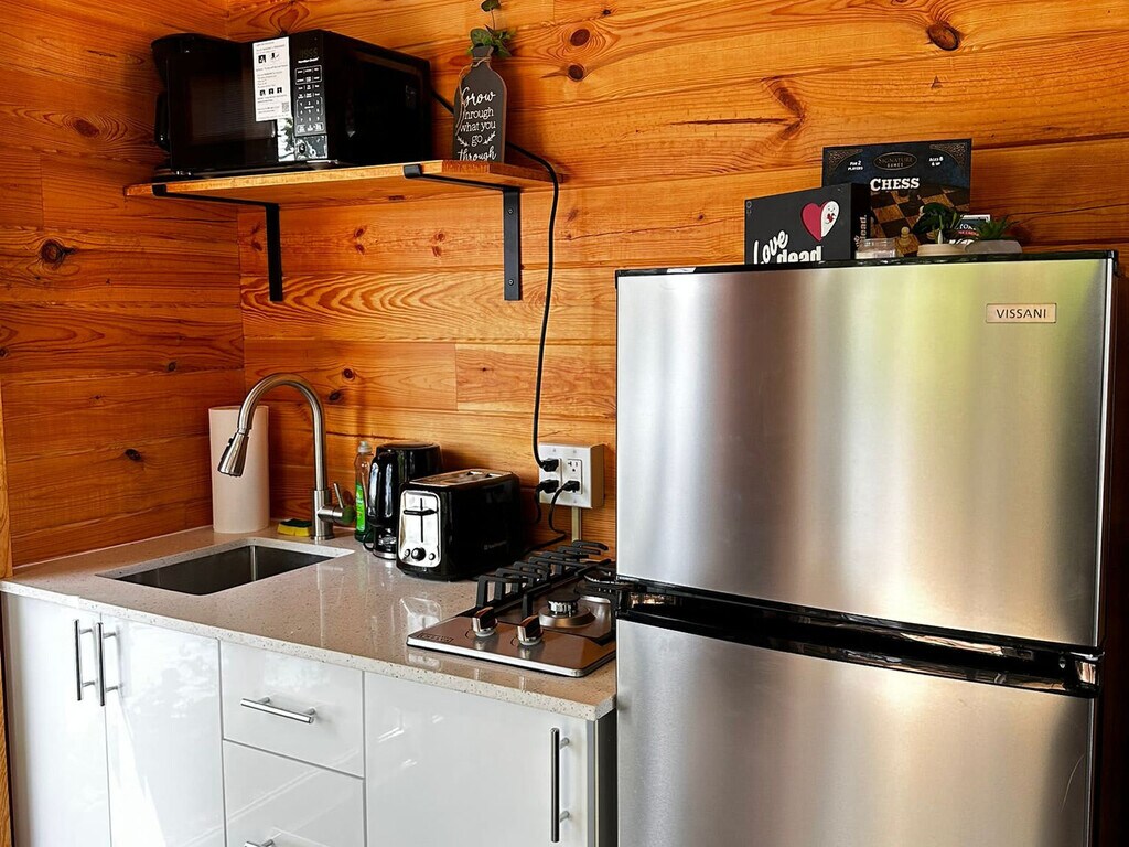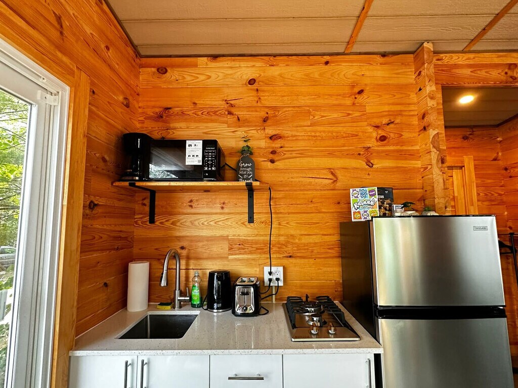 Leave the hustle behind and unwind beneath the stars in this charming 1-bedroom camper, tucked away in the peaceful forests of Parry Sound. Set on the waterfront of Mill Lake, you'll be surrounded by nature's beauty, with sandy shores just moments away. Experience rustic charm, quiet serenity, and your own private retreat. Step inside this cozy eco-log cabin and discover a space designed for relaxation and connection with nature. The main living area offers a shared space with comfortable seating, perfect for unwinding after a day of exploring. Adjacent to this is the fully equipped kitchen, featuring a mini-fridge, microwave, and kettle, making meal preparation a breeze. The private bedroom boasts a queen-size bed, ensuring a restful night's sleep. A full bathroom completes the interior, providing all the necessary amenities for your comfort. Outside, you'll find a BBQ grill, ideal for preparing delicious meals while enjoying the fresh air. With lake access just moments away, you can easily spend your days swimming, sunbathing, or simply taking in the breathtaking views. Quiet hours are between 22:00 and 8:00. Smoking inside the property is strictly prohibited, and a $250 fine will be charged for any violation of this policy.