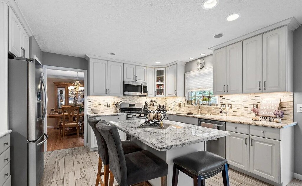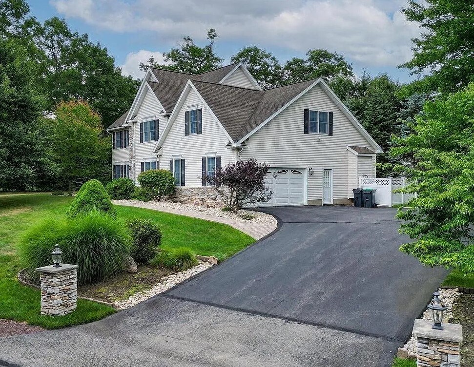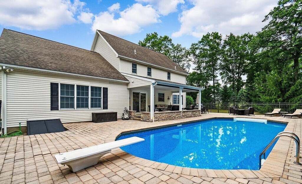 Available for as little as a 6-month lease. Partially furnished. Located in the sought-after Mountain Tops – Beautiful Grey Stone Manor development, this impressive corner-lot home offers space, comfort, and luxury throughout. Featuring four spacious bedrooms and four bathrooms (two full, two half), the layout is designed for both everyday living and entertaining. The modern kitchen includes stainless steel appliances and elegant granite countertops, opening to a warm and inviting family room with a stone fireplace. The first floor also offers a dedicated office, a formal living room, a generous dining room, and an open hallway with a dramatic second-floor overlook. Upstairs, the primary suite boasts an expansive bathroom and exceptional closet space. Three additional bedrooms, a convenient second-floor laundry room, and another full bathroom complete the level. The finished basement adds even more living space with a large family room and an additional bathroom, plus a new high-efficiency gas furnace. Outside, enjoy a large yard, an oversized two-car garage, and a heated in-ground pool—perfect for relaxing or entertaining. All of this comes with an unbeatable location close to the interstate, shopping, and top-rated schools.