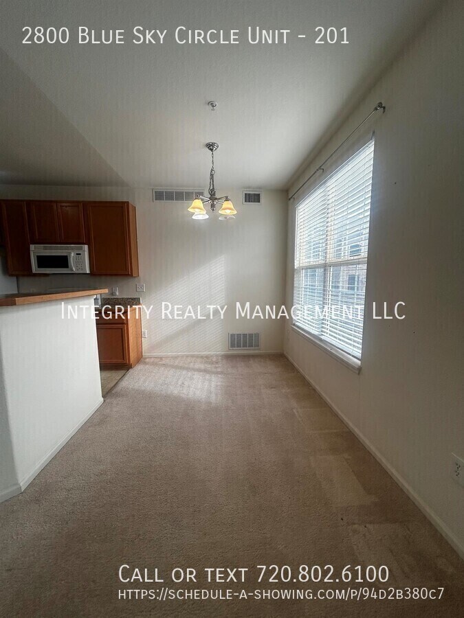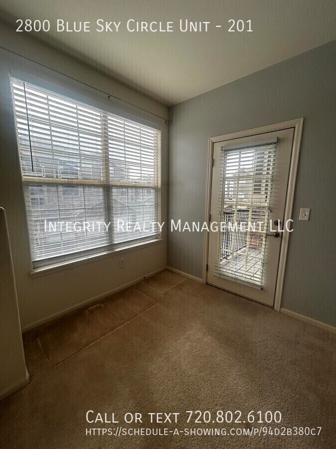 2800 Blue Sky Circle Unit 201 Erie, CO 80516 Rent: $1,995.00 / month Welcome home to this beautiful 2-bedroom, 2-bath second-floor condo located in the desirable Blue Sky Circle community of Erie. This well-appointed residence offers comfort, space, and stunning Front Range scenery—perfect for those seeking both convenience and Colorado charm. Property Features 2 Bedrooms | 2 Full Bathrooms Second-floor unit with excellent natural light Gas fireplace for cozy Colorado evenings Spacious kitchen with ample cabinetry and counter space Two private balconies, one featuring gorgeous mountain views Open-concept living and dining areas ideal for relaxing or entertaining Peaceful community setting with easy access to shopping, dining, and commuter routes Enjoy morning coffee or evening sunsets from your balcony while taking in the mountain backdrop—this condo truly offers the Colorado lifestyle. Important Applicant Disclosure (Colorado Law) Applicant has the right to provide a Portable Tenant Screening Report (PTSR) that is no more than 30 days old, as defined in Section 38-12-902(2.5), Colorado Revised Statutes. The report must be provided directly by the consumer reporting agency and can be no more than 30 days old. If Applicant provides a PTSR, we are prohibited from: a) Charging a rental application fee. b) Charging a fee for access to or use of the PTSR. 18 Months Lease Sewage included Six Months Lease Ac