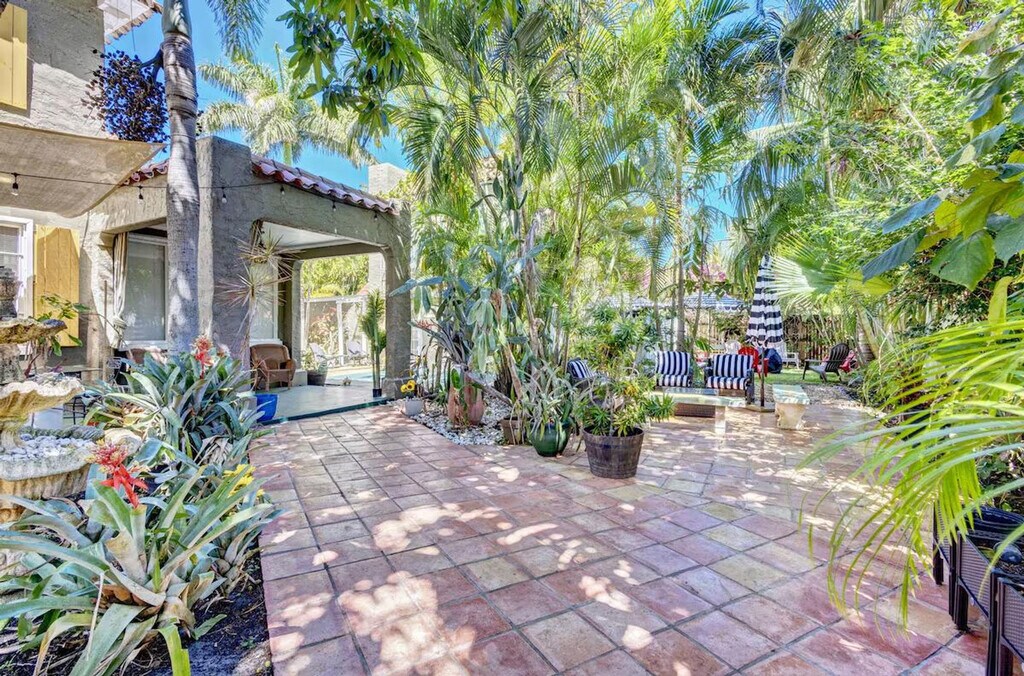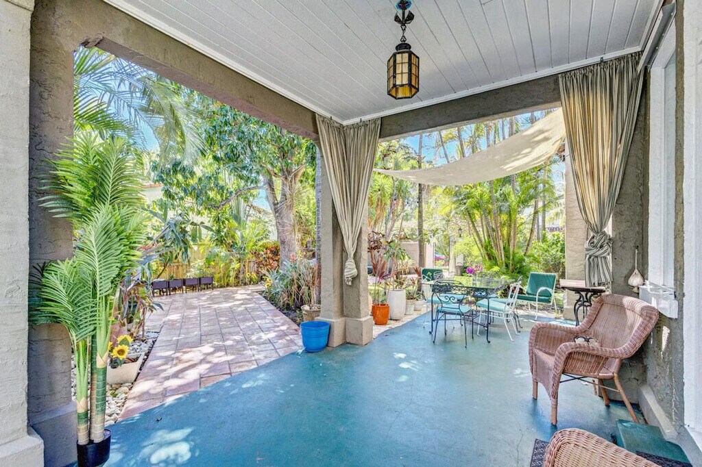 Feel at home in this lovely 1-bedroom apartment in the garden unit (second floor) of a historic 1920s house in the highly sought-after Northwood neighborhood in West Palm Beach. The apartment is fully equipped for your every need and features a newly remodeled full bathroom and a quaint kitchen. There is also a lovely sunlit dining room. High-speed internet and cable TV with hundreds of channels available (HBO, Discovery, etc.) are provided. A shared washer and dryer are available on the property. Enjoy morning coffee in your private patio surrounded by a spectacular garden with old palm trees and fruit trees. Situated in historic Old Northwood, near the end of a quiet cul-de-sac in a prime location, the apartment is a very short drive across the bridge to Palm Beach, Worth Avenue, the Atlantic beaches, and downtown West Palm Beach. The airport is a short 10-minute drive, and it is a 5-minute drive to the train station (Brightline to Tri-Rail to Miami or Fort Lauderdale). It's an easy walking distance to the intracoastal waterway, the Palm Beach Maritime Museum, and Currie Park with its bike paths, tennis courts, and fantastic views. Within two miles, you will find shopping, restaurants, theaters, sidewalk cafes, nightclubs and boutiques, Clematis Street's shopping and nightlife, the Kravis Center for the Performing Arts, the Norton Museum, and the Palm Beach County Convention Center. The vibrant shopping area of Northwood Village is four blocks away, where streets are lined with antique stores, a yoga studio, and tons of restaurants. Quiet hours are from 10:00 pm to 6:00 am. There is a strict no pet policy. Registration Number: 000032495, [SI]