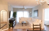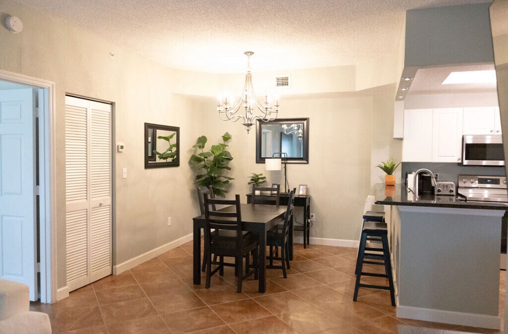 Resort style condo for rent in San Matera annual which is 2 bedroom, 2 full baths, 1,154 square feet under air with covered screen patio. Furnished. Freshly painted, carpets professionally cleaned and entire inside professionally cleaned. Has full washer and dryer, range, microwave, refrigerator, dishwasher. All the furnishings, with beds, tables, sofa, chairs etc. Walk to clubhouse, with meeting room, fitness gym, billiard room, community pool, tennis/pickleball courts that are so close. Close to all shopping in Downtown at the Gardens, Publix grocery store, movie theater, specialty shops then you have the Gardens Mall with all the department stores and finally across street Legacy Place and more shopping and fabulous restaurants all over. I-95 is 5 minutes away on most.