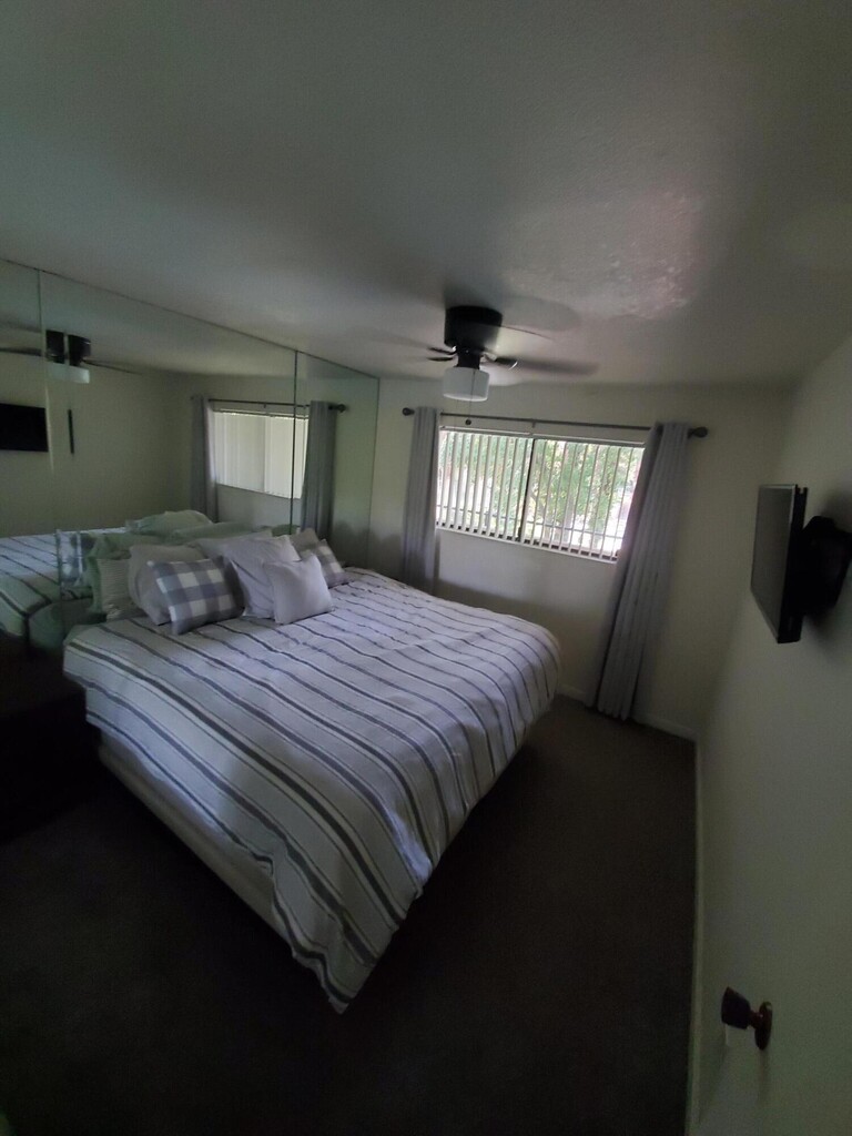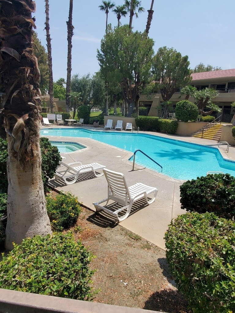 This is a seasonal rental . This 1 bedroom 1 bath,bathroom has been currently remodeled,turnkey furnished condo,Unit has been recently painted,newer carpet in living room and bedroom. This is a upper unit over looking the pool. Futures a balcony for your evening beverages This is a very nice gated community,laundry room with in the gates,with several pool's and spa's. Very close to downtown Palm Springs. Condo is available for 2026 season