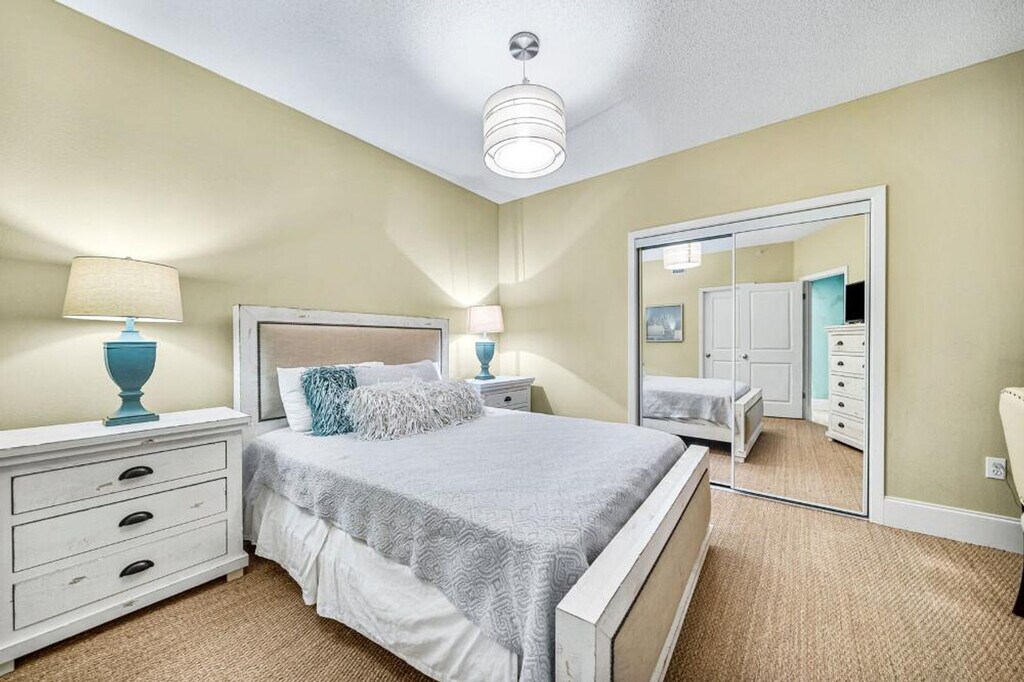 Explore this incredible condominium offering sweeping panoramic views of the Beach and Bay from its expansive private balcony. This condo provides an unparalleled vantage point over the magnificent Gulf of Mexico and an array of on-site amenities to keep everyone entertained. Situated on a sprawling 30-acre peninsula, the Caribe Resort stands out as the lodging destination with the most extensive range of amenities on the island. It boasts over 40,000 square feet of pools, a convenient private beach cart service, a top-notch five-star restaurant, and much more. The inviting living room features abundant natural light streaming in through floor-to-ceiling windows, offering glimpses of the spacious balcony and the mesmerizing Gulf of Mexico. The living area is both luminous and roomy. The modern kitchen comes equipped with stainless steel appliances, including an electric wall oven with a built-in microwave. Kickstart your day by the poolside, and conclude it with a refreshing drink while witnessing the most breathtaking sunset you'll ever experience. One assigned parking spot in the parking garage and a second vehicle can park in any unmarked spot. Enjoy a day floating around the lazy river, have a friendly game of putt putt, take the kids to play at the brand new play area, or step over take a short stroll down the dock to Cobalt fine dining restaurant. Boat slips are also available on a first come first serve basis. Enjoy some active time at the basketball court, tennis courts, or in the brand new state-of-the-art fitness center. For a day at the beach, hop on the beach trolley and get there quickly. Security camera/recording device — For your safety and protection, some properties have cameras installed outside. Surveillance cameras are not inside any of our properties. We don't provide beach towels. For March 1st to May 1st the minimum age requirement for check-in is 25 years old. No smoking in the unit/house as well as the balcony. Any violation of the smoking policy will incur a $250.00 fine plus the cleaning costs necessary to remove smoke odors from the unit/house and/or linens. Quiet hours are observed from 10 pm to 8 am. Violators will be charged a $200 fine. The condominium association has a strict "No Pets" policy. This applies to emotional support animals as they are not covered by ADA. Only ADA-compliant service dogs are allowed according to Federal Law. We are not responsible for any accidents, injuries, as well as stolen or damaged items that occur while on the premises, its facilities, or parking lots. Traveler must be at least 23 years of age to make a reservation. A State Identification Card or Driver's License copy will be requested upon booking. No parties or events: Violators will be charged a $500 fine. For same-day late check-ins, you need to get the host's approval before booking. Exciting watersports including parasailing, charter fishing, jet skiing, and dolphin cruises are all offered at Caribe Marina. It is the #1 Red Snapper fishing destination in the United States. Enjoy a world-class restaurant Cobalt, GT’s on the Bay, Cosmos, and Luna’s. Experience live music at the world-famous Flora-Bama. Seasonal events include the Shrimp Fest, Mullet Toss, and Hangout Music Festival. [SI]
