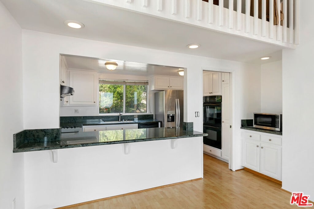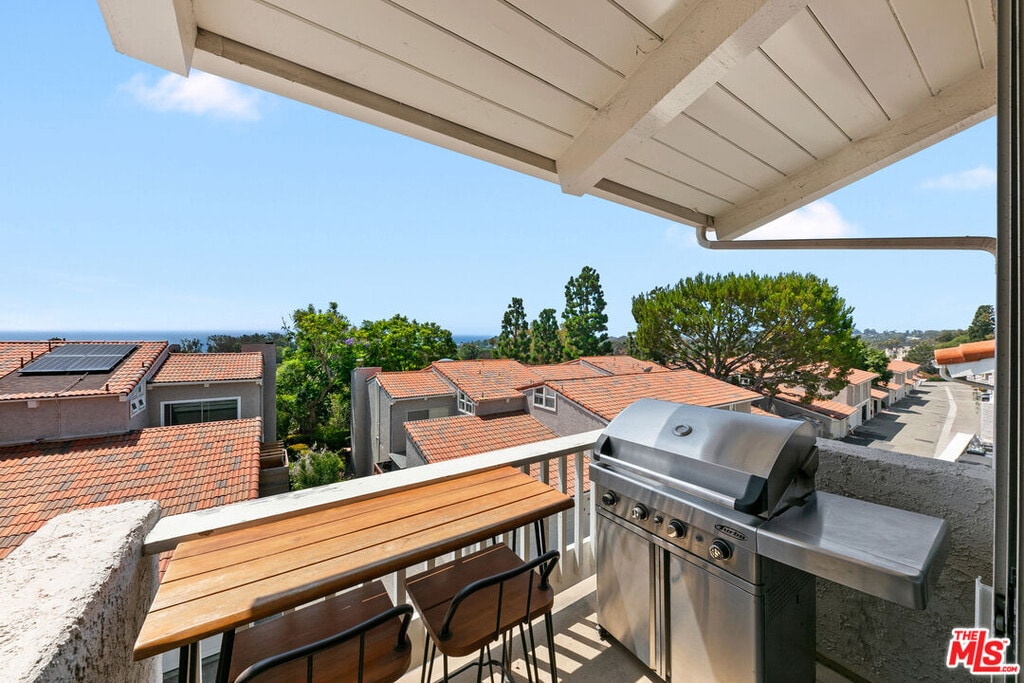 Positioned on the top row of the highly sought-after Malibu Villas, this end-unit condo captures breathtaking ocean views from a peaceful, elevated vantage point. Located within a guard-gated community just across the street from Malibu's iconic beaches, this 2-bedroom plus a loft residence offers the perfect blend of comfort and coastal charm. Step inside to find an open, airy layout featuring vaulted ceilings, expansive windows, and hardwood floors. The living room is centered by a wood-burning fireplace, ideal for cozy Malibu evenings and relaxing entertainment. The gourmet kitchen features granite countertops, maple cabinetry, and stainless-steel appliances, including two ovens, a stovetop, dishwasher, and refrigerator. The primary suite offers a private retreat with an en-suite bathroom, walk-in closet, and private balcony. There is a second en-suite bedroom with access to an outdoor courtyard, plus a versatile loft area which can be used as a third bedroom, home office, or creative studio. The home is complete with an in-unit washer and dryer and a private two-car garage. Residents of Malibu Villas enjoy exclusive access to resort-style amenities, including a communal pool, spa, and clubhouse, all set among lush landscaping and just a moment's trip from sandy beaches, beautiful hiking trails, and local Malibu shops. MLS# 25591693