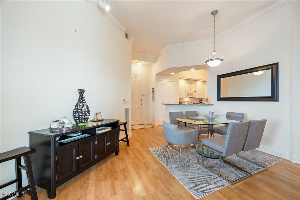This beautifully furnished second-floor unit in The Alta Mar Condominiums offers a harmonious blend of comfort and convenience. Featuring white cabinets and granite countertops,the interior is both stylish and functional,with turnkey furnishings providing a seamless move-in experience. Alta Mar Condominiums boasts a variety of amenities,including a heated pool,spa,exercise room,library,kayak launch,on-site management,and garage parking. Residents can also enjoy the convenience of an assigned parking spot and a trolley stop that provides easy access to the vibrant downtown Fort Myers area. Downtown Fort Myers is known for its charming riverfront,historic architecture,and lively entertainment scene,including unique dining,boutique shopping,and cultural attractions. Located in Southwest Florida,Fort Myers offers stunning beaches,world-class golf courses,and opportunities for boating and fishing,all complemented by a relaxed,coastal lifestyle.