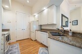 This stunning new listing on the first floor of a waterfront mid-rise building offers exceptional living with nearly 700 square feet of space. The property features highest-end upgrades,including elegant travertine flooring and granite accents throughout. It boasts modern track lighting and upgraded fans and fixtures,enhancing the ambiance. The kitchen is equipped with stainless steel appliances,tiled backsplash,all granite counters and even includes a custom-built bar area off the dining space. The one-bedroom,one-and-a-half-bath layout provides a comfortable and functional waterfront living experience with 2 garage spaces and private storage,complemented by a generously sized walk-in closet. A perfect blend of luxury and convenience awaits! Available for ANNUAL LEASE ($1695/MO) OR SEASONAL LEASE ($3,000/MO) for upcoming 2026 Season.