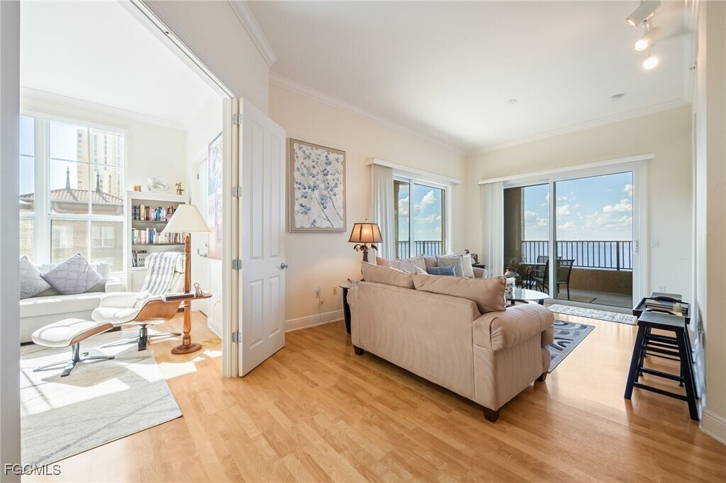 Discover the perfect blend of serene waterfront living and vibrant city life with this rare river and pool view condominium in beautiful Alta Mar,an access controlled community with covered parking and the most amazing amenities you'll find anywhere. Enjoy the 24/7 accessible state-of-the-art fitness center,a cozy library,resident lounge,several grills,the riverwalk and fishing pier. Breathtaking views of the river,sparkling pool and spa complex from every room. Steps away from the vibrant nightlife,restaurants,and shops of the River District. Less than 30 minutes to some of Florida's most beautiful beaches and the SW Florida Airport.