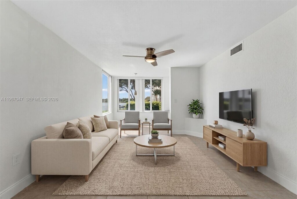 Spectacular direct lake views from this first-floor corner unit, private and peaceful 2/2 condo. One car garage, Impact windows, tile flooring throughout, Haier Washer / Dryer combo. Upgraded Kitchen Cabinets & appliances. Enjoy resort style amenities including 3 swimming pools, a fitness center, billiards room, tennis, racquetball and mile long walking path. Community has security on property 7 nights a week. Minimum credit score is 620 TransUnion FICO 8. Move-in w/ just first month and 1 security. MLS # A11967047
