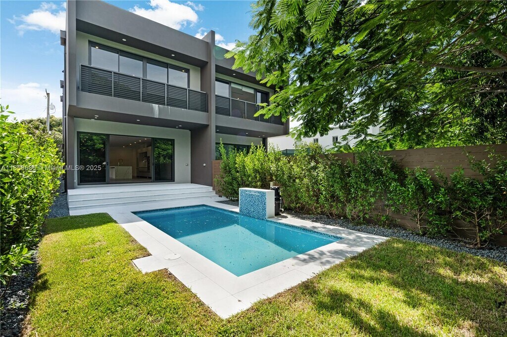 Stunning New Construction 4BD/4BA Modern Townhome Experience luxury living just steps from Coconut Grove and Coral Gables, and minutes to Brickell and Downtown Miami. This brand-new modern townhome features four spacious bedrooms and four full bathrooms, with high ceilings on both levels and sleek porcelain tile flooring throughout. The European-style kitchen boasts premium cabinetry and appliances, complemented by elegant imported marble bathrooms and built-in closets in every bedroom. Enjoy outdoor living with a private pool, covered patio, and a generously sized fenced yard. Additional features include full size washer and dryer on the second floor, Kohler and Duravit fixtures, a one-car garage, and gated parking. Pool and yard maintenance included in rent.