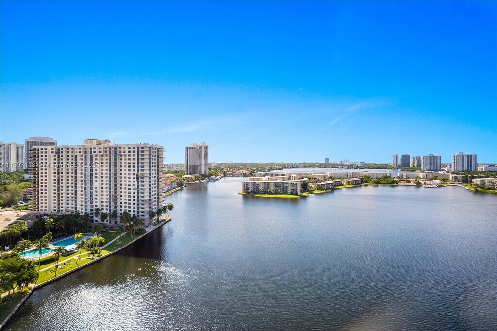 Experience breathtaking panoramic water views from every window in this beautifully remodeled 2-bedroom + den, 2-bathroom apartment at Admirals Port. Enjoy the serene beauty of Little Maule Lake from your expansive wraparound balcony, offering a sought-after direct southern exposure. This spacious and light-filled furnished residence features a modern upgraded kitchen with sleek cabinets and elegant porcelain tile flooring throughout. Additional highlights include hurricane shutters, custom blinds, and enhanced overhead lighting. Admirals Port offers resort-style amenities including pools, tennis, fitness center, 24-hour security, and more. Located near restaurants, Aventura Mall, and houses of worship, this apartment offers convenience and lifestyle.