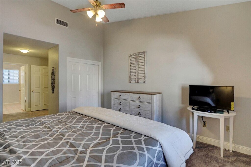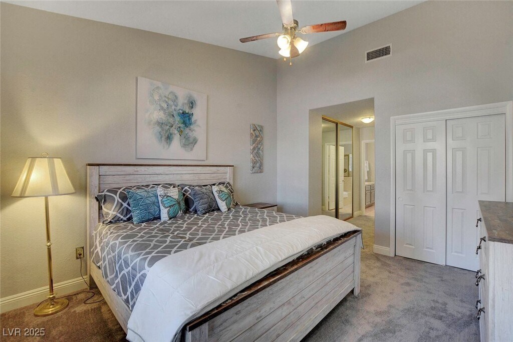 Nestled in a quiet, security guard-gated 55+ community just minutes from the Strip, this rare 2-story townhome offers the perfect blend of comfort, convenience, and lifestyle. The neighborhood is beautifully maintained with resort-style amenities, including a sparkling pool, clubhouse, fitness center, and lush greenbelts. Inside, the home features 3 bedrooms and 3 full baths, includes a downstairs bedroom and bath with private patio access, plus two spacious upstairs en-suites thoughtfully positioned on opposite sides for maximum privacy. The bright, airy living room welcomes you with solid flooring throughout, while the step-saving kitchen offers generous cabinet space and a cozy eat-in counter. Move-in ready and designed for easy living, this home is a rare find in a sought-after community. Please note, HOA restrictions limit showings to weekdays only. Applications are reviewed Monday through Friday during office hours, with lease commencement required within 10 days of approval.