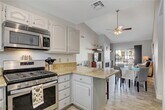 Welcome to this charming single-story townhome nestled in the highly sought-after guard-gated 55+ community of Quail Estates West. This 2 bedroom, 2 bath home offers an inviting layout with vaulted ceilings that create a spacious, airy feel throughout. The kitchen features stainless steel appliances and offers plenty of cabinet storage. Spacious laundry room with cabinets and washer and dryer. The primary bathroom has a walk-in shower, jetted tub, and a skylight that fills the space with natural light. From the living room, step through sliding glass door to your own private back patio - ideal for enjoying morning coffee or unwinding in the evening. Low maintenance lifestyle and access to amenities, this home offers the perfect blend of comfort and convenience.