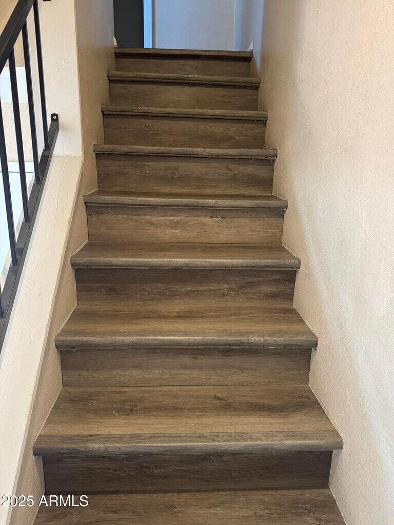 Cozy 2-bedroom,1.5-bath townhome with no carpet! Enjoy a private,fenced patio and a convenient covered one-car carport. The main level features a spacious great room,dining area,kitchen,and a half bath. Upstairs,you'll find both bedrooms and a full bathroom. Tile flooring throughout the downstairs and brand-new LVT upstairs give the home a clean,updated feel. Refrigerator,washer,and dryer are included for added convenience. There's also an exterior storage room next to the carport and a security screen door for peace of mind. Plentiful guest parking is available,and the community offers a refreshing pool and relaxing spa.
