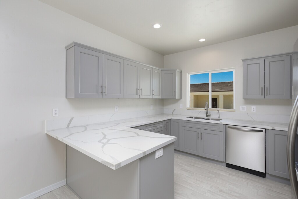 Newer construction. Two bed two bath townhomes tastefully appointed with stainless steel appliances, stone countertops, soft close cabinets, custom tile baths, tile flooring throughout, ceiling fans, elegant lighting, enclosed patios for your pets, laundry in garage, plumbed with soft water, two car attached garage.