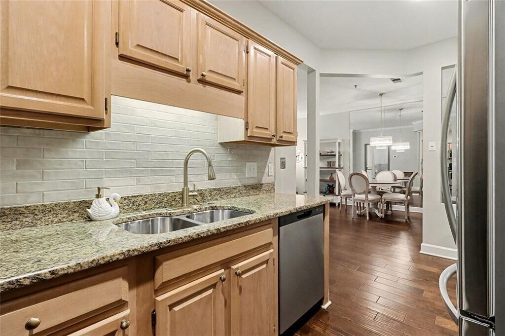 Live in luxury! Newly refreshed 2bd/2ba condo on the 2nd floor. An upscale community with a dedicated concierge service. It has beautifully designed space to conduct a business meeting or greet guests. Once you enter the home you will find a kitchen with open concept to entertain your guests! A unique dining area with wall to wall mirrors. A bar area with LED lighting and home is fully furnished w/fireplace in living room. Sunroom w/light exposed throughout the home on a sunny day. Main Suite has double closets and ensuite bath w/dual vanity tub/shower. Secondary bedroom has ample closet space and its own full bath. Has 2 parking spots. Moments from Lenox,Phipps Plaza Buckhead.