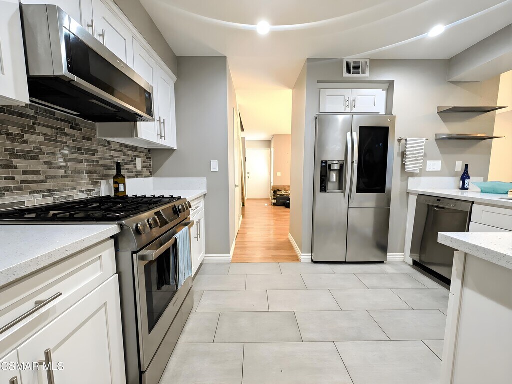 This townhome blends modern design with everyday comfort. The private patio offers comfortable seating and a glass firepit--perfect for relaxing or entertaining--and includes new patio furniture (sofa, table, chair, and couch) that may remain with the lease.Inside, the remodeled kitchen features sleek finishes, a rotating spice rack, and a full suite of updated appliances including a brand-new LG triple-door refrigerator, stove, range, and dishwasher. Partial furnishings include a glass dining table with chairs and dressers, which can be removed upon request.The primary suite includes a bespoke built-in closet system with custom drawers and shelving for elegant, efficient storage. Both bathrooms have been updated to reflect the home's contemporary aesthetic, with one showcasing new glass shower doors.Smart-home upgrades include a Nest thermostat, Lutron smart lighting, Ring doorbell camera, and phone-enabled laundry controls for remote operation--all enhancing comfort and energy efficiency.Additional highlights include cordless TV mounting stations in the living room and a bedroom for a clean, wire-free setup, a Tesla EV home charger, covered parking, in-unit washer and dryer, and optional bicycle-mounted storage (two racks available on request).Residents enjoy access to a private community pool, clubhouse, and lounge areas. Conveniently located near Chumash Park and Agoura High School with easy access to the 101 freeway, Malibu, Thousand Oaks, Oak Park, Westlake Village, and Calabasas, this home offers both style and serenity.Some photos have been artificially enhanced.
