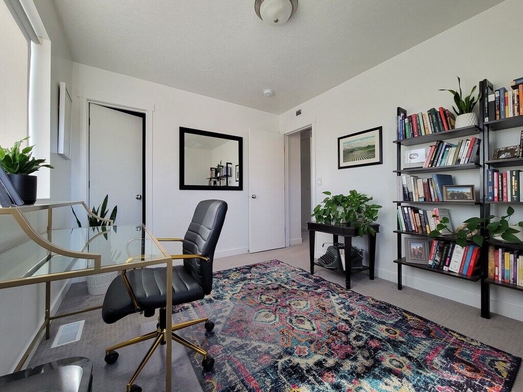 Spacious, modern, and thoughtfully upgraded this stunning 4-bedroom, 3.5-bath single-family home in Vineyard offers comfort, flexibility, and premium finishes throughout. Over 2,600 sqft living space, largest lot in the neighborhood, and only one adjacent neighbor! Single family home with 4 bedrooms and a separate office along with 3.5 bathrooms available for rent in January 2026. Near Trailside Elementary School, walking distance to 3 parks, and includes free access to 2 HOA clubhouses with gym, pool, hot tub, and recreation rooms. Three upstairs bedrooms with natural light and mountain views including a large primary bedroom with large bathroom and walk-in closet. Fully finished basement features the fourth bedroom/primary bedroom/living space and has a large bathroom with ample storage and two closets, a small refrigerator, second stackable washer/dryer hook-up, and a small bonus room with a door that can be used as an office, workout space, extra storage, or playroom. Additional features: * Paid solar panels * Nest Bluetooth thermostat * Ring Bluetooth monitoring * Keypad for keyless front door and garage access * Mudroom and storage area from garage entry * Upgraded GE kitchen appliances * Samsung washer and dryer included * Basement refrigerator included * Water softener system in whole house * Premium fixtures and finishes * Parking for four cars: two-car garage and two cars in driveway * Tenant pays all utilities and provides own yard maintenance * Small dogs negotiable with non-refundable cleaning fee and additional rent * No smoking on property * 4 designated parking spots; street parking prohibited by HOA