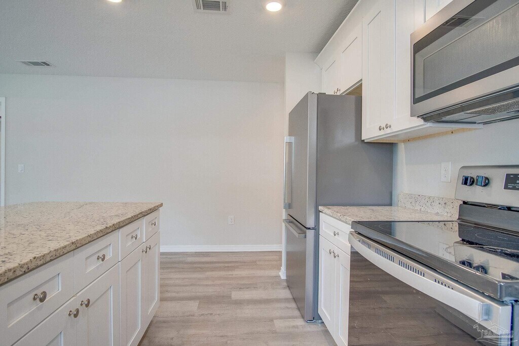 Located off Avalon Blvd in Milton near I-10, this almost brand-new, beautiful 3-bedroom, 2-bath home features LVP flooring throughout, granite countertops, and white shaker soft-close cabinets. The open floor plan includes a kitchen overlooking the dining area and spacious living room! The private primary suite offers a double vanity, granite countertops, walk-in shower, and large walk-in closet. Two guest bedrooms, a full bath, and a laundry room are located near the front of the home. Enjoy outdoor living with covered front and back porches. The home includes a 1-car garage. Pets accepted with owner’s approval (aggressive breeds not accepted) with a $250 non-refundable fee per pet. Residents are required to maintain renter liability insurance, which can be added for $11.95 per month, or they may opt into the Resident Benefits Package for $45 per month, which includes insurance, HVAC filter delivery, and on-demand pest control. Home is ready for move-in!