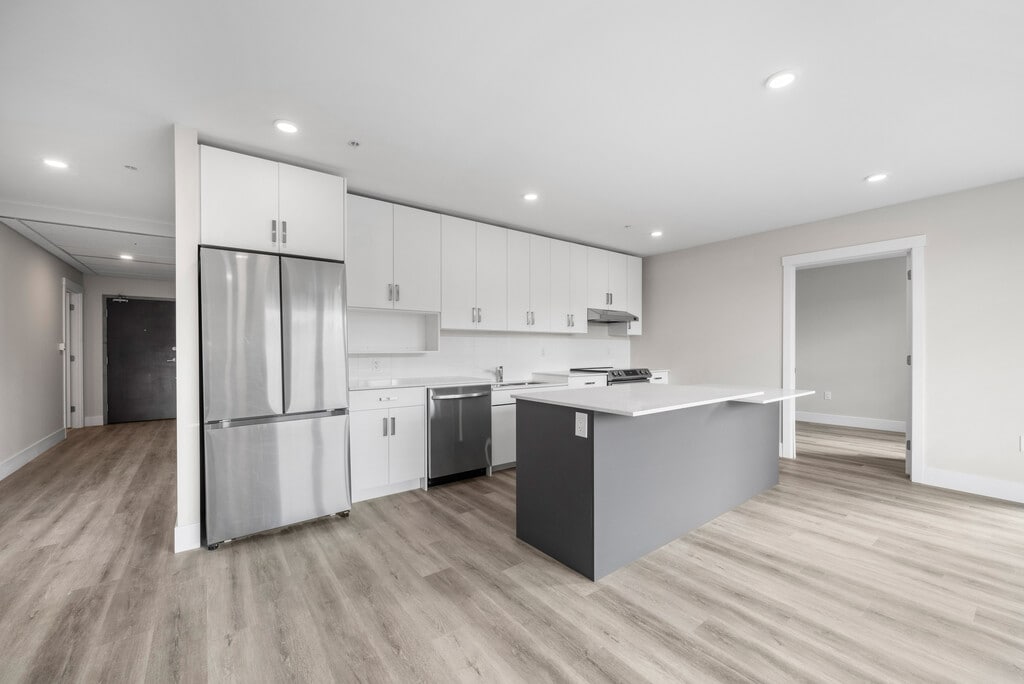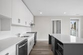 2 Bedroom Elation Suites - Plan A Step into a modern living room designed to enhance your lifestyle and elevate your home. with massive windows that invite abundant natural daylight, the space feels bright, refreshing, and connected to the outside world. The spacious layout provides ample room for relaxation and entertainment, allowing you to customize the space to suit your individual needs. Enjoy the exceptional balcony view that offers a picturesque backdrop and serves as a tranquil retreat from the hustle and bustle of daily life. With 9-feet ceilings in the living areas, the atmosphere feels open and airy, enhancing the overall sense of grandeur and sophistication. Indulge in the luxury of a hotel-inspired bathroom designed to elevate your daily routine.Each unit features granite countertops, in-suite laundry, private balconies and AC. Kitchen is equipped with 4 stainless steel appliances. Pet Friendly building with elevator, intercom, mailboxes, live-in superintendent and underground parking. Welcome to your new home in the heart of the city! This spacious 2 bedroom, 2 bathroom unit offers the perfect combination of comfort and convenience, spanning a generous 1341 sq. ft. The unit comes equipped with a washer and dryer in-suite for added convenience, along with a fridge and stove to meet all your culinary needs. With these modern amenities at your fingertips, you can enjoy a stress-free living experience in a prime location. Don't miss out on the opportunity to make this stylish unit your own! Contact us today to schedule a viewing and secure your new home.