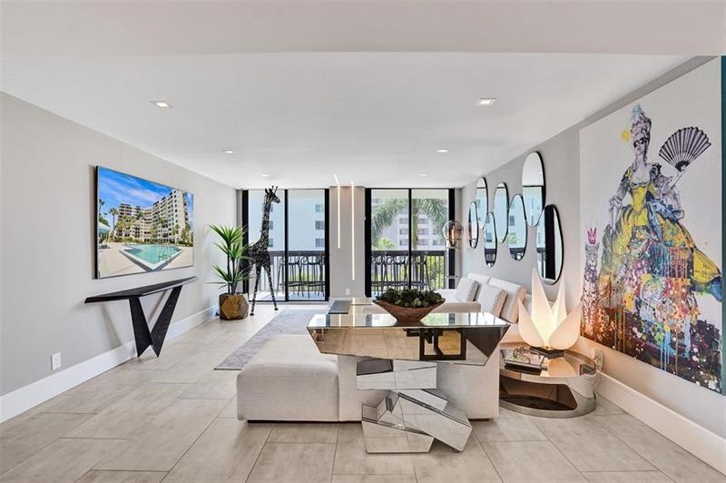 Experience refined coastal living in this fully updated retreat FURNISHED 2BD 2BA, showcasing high end materials and Luxury finishes throughout. Located in desirable east Pompano Beach, this residence offers a thoughtful split layout that blends comfort with style. Highlights include tailored design features, custom built ins, whole home smart tech, and a chef’s kitchen equipped with Quartz surfaces and top tier Miele appliances. Beautiful tile through the open layout Enjoy two spacious bedrooms and two spa inspired bathrooms, plus a private balcony with views of the pool and intracoastal. COVERED GARAGE PARKING. Walking distance to the beach and bike ride to the Pier!