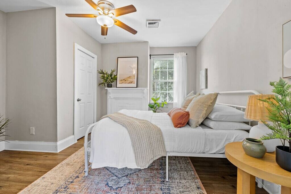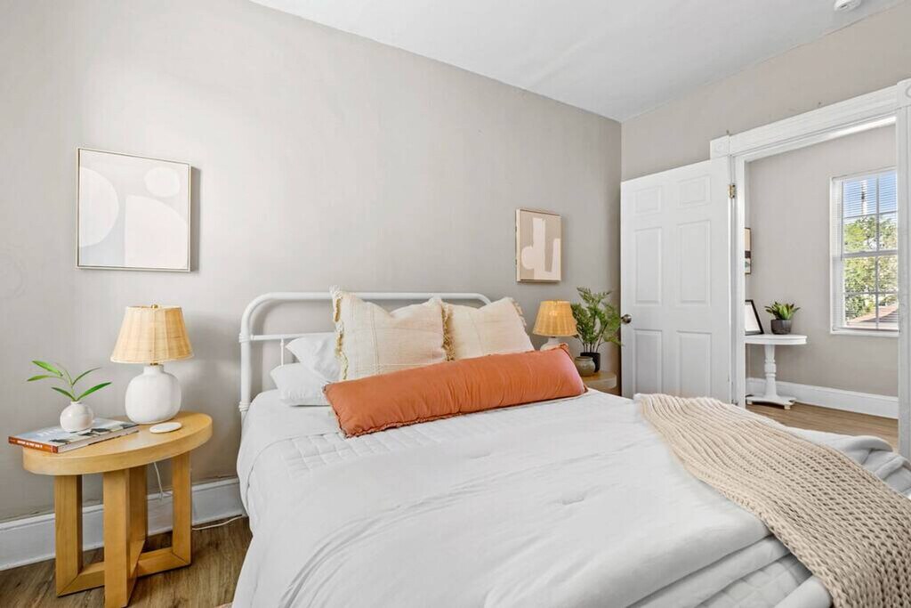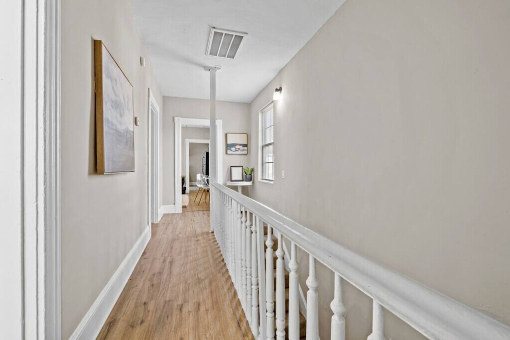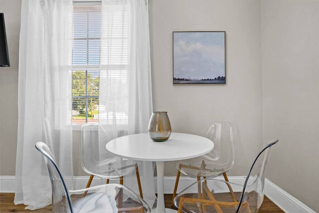 Welcome to the Shipside Suite in Portsmouth, Virginia! Feel at home in this 2-bedroom duplex with 1 bathroom and 950 sq ft of living space. This is an upstairs unit of a duplex, and the entrance is at the front of the building. This apartment has all you need for your family or business trip, including a smart TV, a stocked kitchen, and fast Wi-Fi. Parking is available for one car on-site, with additional street parking available. The apartment is located in Brighton Portsmouth, an area directly adjacent to the naval shipyard. The neighborhood is an eclectic mix of industrial, residential, and business properties. While restaurants and entertainment in the immediate area are sparse, the neighborhood is ten minutes from downtown Portsmouth, an artsy area with a wide variety of restaurants and entertainment. Much of the economy in the city is driven by the Portsmouth Naval Hospital and the Naval Shipyard, located within short travel distance to the property. Quiet hours are observed between 10:00 PM and 8:00 AM. Smoking is allowed outside only; a one-time charge of $250 will be applied to the overall booking fee for smoking inside. We ask that you keep noise at a reasonable volume. [SI]