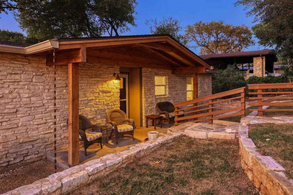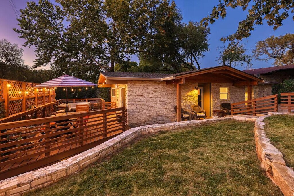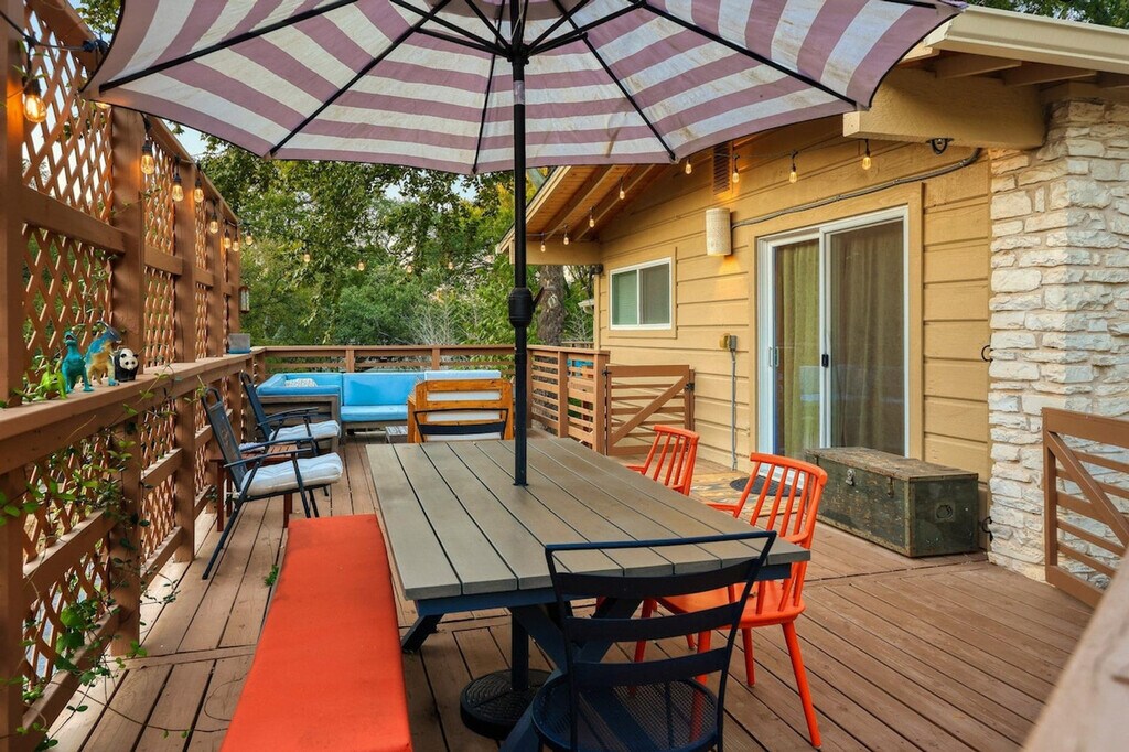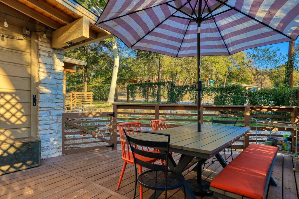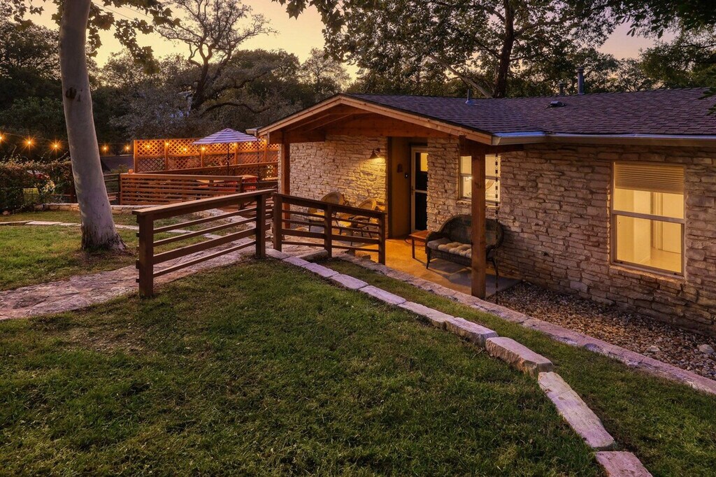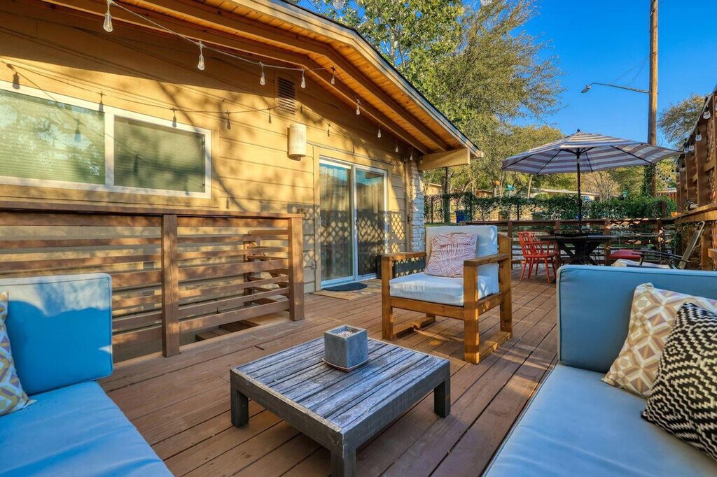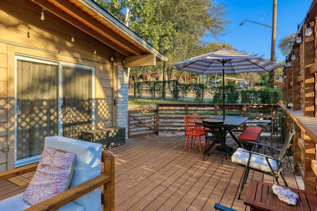 Feel at home in this beautiful two-bedroom, one-bath apartment featuring a king-size bed and a queen bed. Enjoy the sunny living room, beautiful patio, and dining area. The kitchen is fully furnished, and there's a fenced front yard if you bring a pup. Relax with a nice big flat-screen TV and beautiful modern decor. This updated home is just 3 miles from downtown Austin and the convention center, and only 1.5 miles from Barton Springs and Zilker Park, offering a prime location. Immerse yourself in the local scene with popular dining spots like Kerbey Lane Cafe and Torchy's Tacos just blocks away. The remodeled kitchen and bathroom, bamboo floors, and open concept create a welcoming atmosphere. Enjoy modern amenities, including gigabit internet and a smart TV in the living room and in the primary king bedroom. The living room opens up to the large side porch, providing wonderful natural light throughout the living spaces. The property is pet-friendly with a fully fenced yard, making it an ideal family or colleague getaway. Parking is available with unrestricted curb parking. Nestled in a prime location, this apartment is just 3 miles from downtown Austin and the convention center, and only 1.5 miles from Barton Springs and Zilker Park. Popular dining spots like Kerbey Lane Cafe and Torchy's Tacos are just blocks away, making it easy to immerse yourself in the local scene. Check-in and check-out times are as per the house guidelines posted in the property.