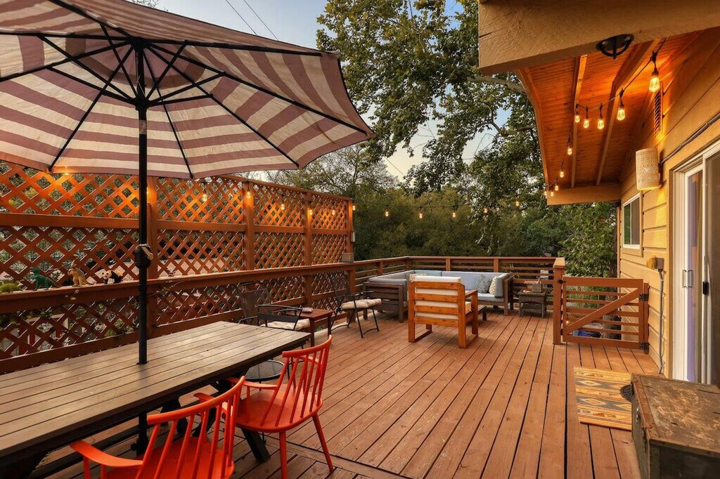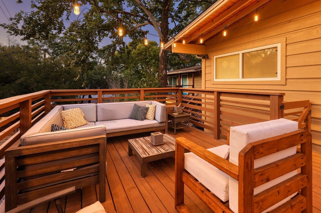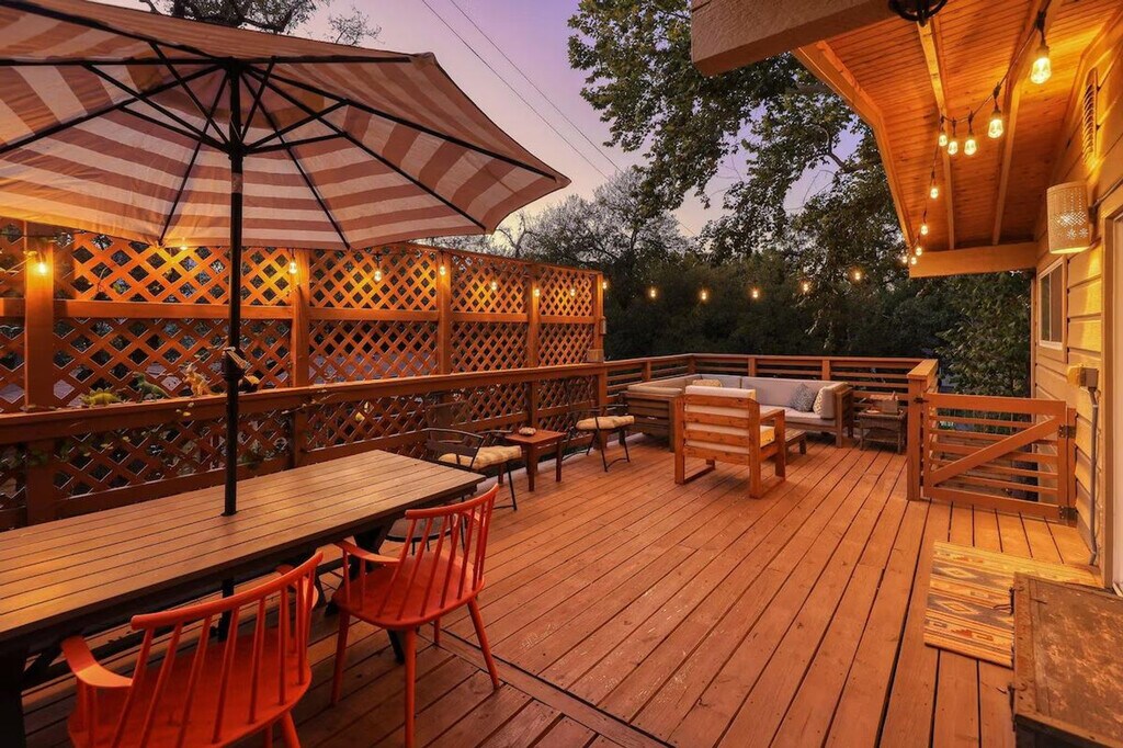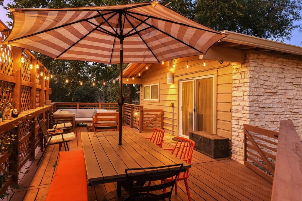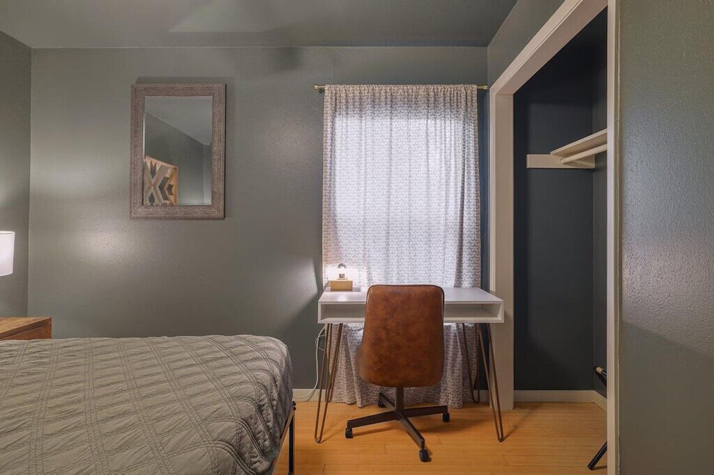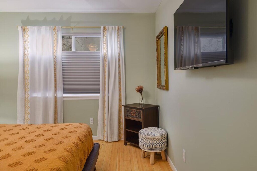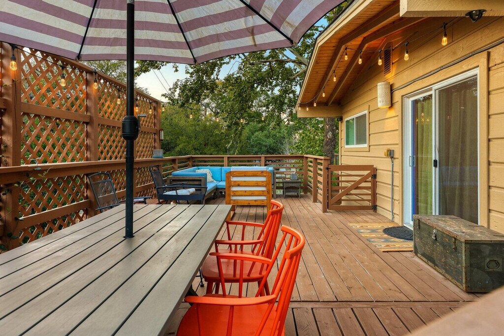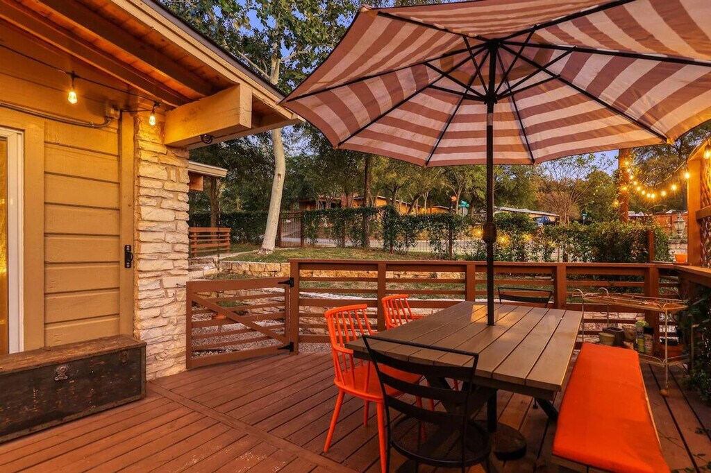 Feel at home in this beautiful two-bedroom, one-bath apartment featuring a king-size bed and a queen bed. Enjoy the sunny living room, beautiful patio, and dining area. The kitchen is fully furnished, and there's a fenced front yard if you bring a pup. Relax with a nice big flat-screen TV and beautiful modern decor. This updated home is just 3 miles from downtown Austin and the convention center, and only 1.5 miles from Barton Springs and Zilker Park, offering a prime location. Immerse yourself in the local scene with popular dining spots like Kerbey Lane Cafe and Torchy's Tacos just blocks away. The remodeled kitchen and bathroom, bamboo floors, and open concept create a welcoming atmosphere. Enjoy modern amenities, including gigabit internet and a smart TV in the living room and in the primary king bedroom. The living room opens up to the large side porch, providing wonderful natural light throughout the living spaces. The property is pet-friendly with a fully fenced yard, making it an ideal family or colleague getaway. Parking is available with unrestricted curb parking. Nestled in a prime location, this apartment is just 3 miles from downtown Austin and the convention center, and only 1.5 miles from Barton Springs and Zilker Park. Popular dining spots like Kerbey Lane Cafe and Torchy's Tacos are just blocks away, making it easy to immerse yourself in the local scene. Check-in and check-out times are as per the house guidelines posted in the property.