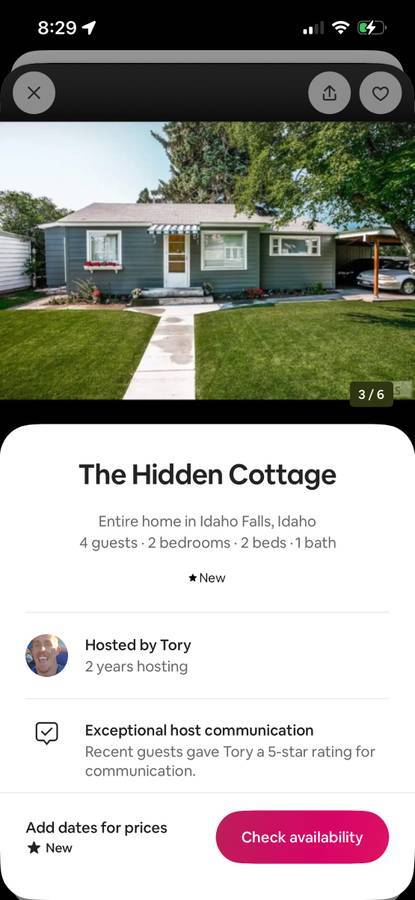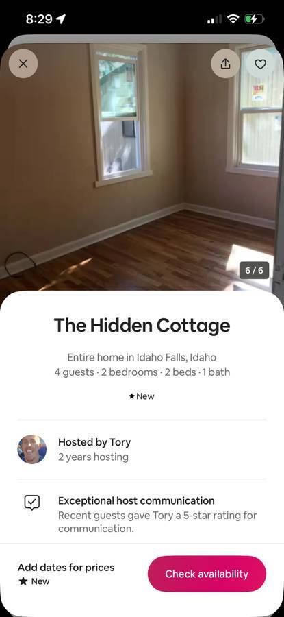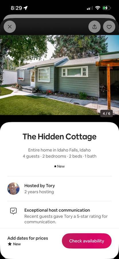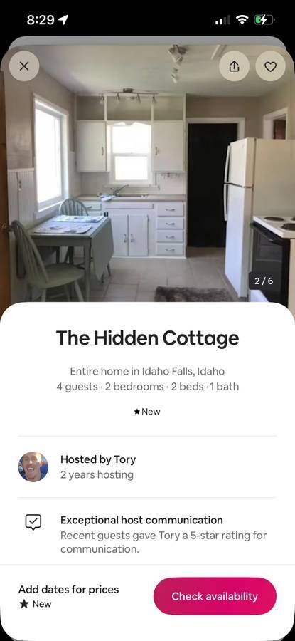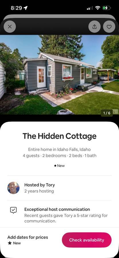 Cottage for rent. 2bd 1ba home in heart of Idaho Falls. This Cottage is at the address 2910.5 which is behind the Main House. It was built as a mother-in-law suite. 900 sqft - clean quiet place to call home - carport - with attached garage $1150/m with $1000 deposit. No pets Available Now