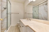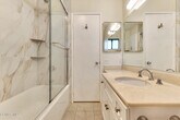 Beautifully upgraded single-story end-unit condo for lease. Located in a very private setting at the rear of the complex. This home features 2 spacious en-suite bedrooms, an inviting living area with a cozy fireplace, and an enclosed private patio. The renovated kitchen offers newer soft-close cabinetry, newer stove and microwave, plus a washer and dryer are included. Both bathrooms feature elegant marble showers. Additional highlights include central air and heat, a tankless water heater, and a 2-car attached garage. Community amenities include a sparkling pool and spa. Water and trash are paid by the HOA. Close to excellent schools, shopping, and restaurants.